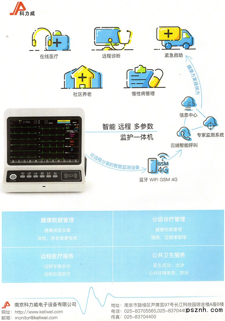 南京科力威電子設(shè)備有限公司位于江蘇省會(huì)六朝古都南京市,是一家專(zhuān)業(yè)從事移動(dòng)醫(yī)療領(lǐng)域產(chǎn)品的設(shè)計(jì)、生產(chǎn)、銷(xiāo)售及服務(wù)的技術(shù)型企業(yè)。近20年的深耕,基于物聯(lián)網(wǎng)基礎(chǔ)上自主創(chuàng)新研發(fā)的移動(dòng)式監(jiān)護(hù)儀和可穿戴式醫(yī)療監(jiān)測(cè)儀,具有低功耗、微型化、智能化的特點(diǎn),是集實(shí)時(shí)監(jiān)測(cè)、無(wú)線傳輸、數(shù)據(jù)處理為一體健康管理終端,適用于個(gè)人、家庭、社區(qū)、醫(yī)院、機(jī)構(gòu)等不同應(yīng)用環(huán)境,完全符合國(guó)家智慧健康養(yǎng)老產(chǎn)業(yè)發(fā)展行動(dòng)計(jì)劃要求。