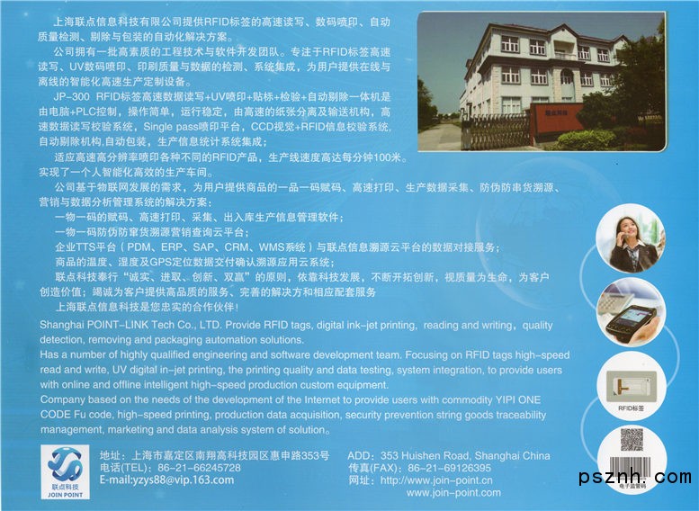 上海聯(lián)點信息科技有限公司是一家對產(chǎn)品賦碼與追溯、信息管理、系統(tǒng)集成,解決方案的提供商。公司擁有一批高素質(zhì)的工程技術(shù)和軟件開發(fā)人才。專注于在線可變數(shù)據(jù)打印管理、采集、系統(tǒng)集成,在線與離線工業(yè)高速打印設備的自主研發(fā)、生產(chǎn)、應用為核心的高新技術(shù)企業(yè)。產(chǎn)品廣泛應用于:防偽標簽、電子標簽、可變數(shù)據(jù)打印系統(tǒng)集成、RFID標簽芯片數(shù)據(jù)讀寫、UV噴印、檢測一體機的開發(fā)與應用、物流追溯碼防串貨系統(tǒng)集成、自動化流水線的改造、電子監(jiān)管碼在線賦碼。聯(lián)點科技奉行“誠實 進取 創(chuàng)新 雙贏”的原則,依靠科技發(fā)展,不斷開拓創(chuàng)新,視質(zhì)量為生命,為客戶創(chuàng)造價值;竭誠為客戶提供高品質(zhì)的服務、完善的解決方案及相應的配套服務。