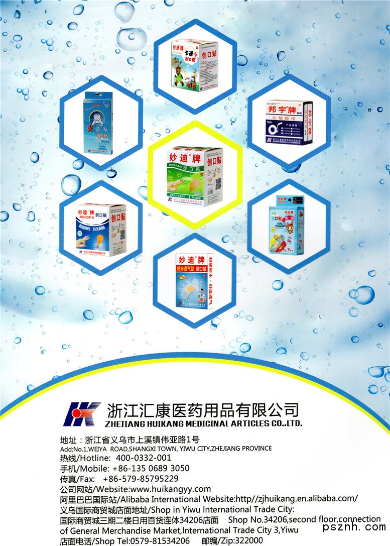 浙江匯康醫(yī)藥用品有限公司成立于2002年,為浙江省醫(yī)療器械行業(yè)協(xié)會理事、金華市醫(yī)療器械協(xié)會副會長、義烏市藥學(xué)會常務(wù)理事單位。主要生產(chǎn)“急救包”、“創(chuàng)可貼”、“退熱貼”、“醫(yī)用膠帶”等醫(yī)療器械衛(wèi)生材料及敷料產(chǎn)品。公司注冊資金550萬元,擁有自行進出口權(quán),現(xiàn)有凈化車間500多平方米,創(chuàng)口貼生產(chǎn)線14條,退熱貼生產(chǎn)線3條,急救包生產(chǎn)線2條,擁有多臺(套)創(chuàng)口貼、醫(yī)用膠帶、退熱貼自動專用設(shè)備和EO滅菌設(shè)備及相關(guān)的檢驗檢測設(shè)備。 公司已通過ISO13485:2003和CE、FDA質(zhì)量管理體系認證,堅持“以質(zhì)量求生存、以誠信求發(fā)展”是本公司的宗旨。良好的品質(zhì),優(yōu)越的價格使得匯康的產(chǎn)品得到了國內(nèi)經(jīng)銷商的喜愛之外,同時還遠銷歐洲、美洲、非洲、亞洲,深受海外客戶的青睞。本公司竭誠歡迎國內(nèi)外新老客戶與我們攜手合作,共同發(fā)展。