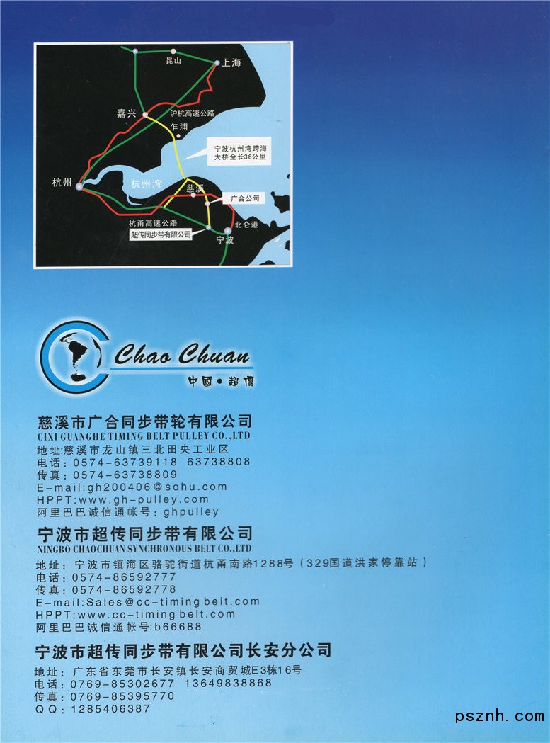 慈溪市廣合同步帶輪有限公司(寧波市超傳同步帶有限公司)專業(yè)生產(chǎn) "ISO" 國際標(biāo)準(zhǔn)和國家標(biāo)準(zhǔn)的同步帶輪和橡膠同步帶、多楔帶、切割式V帶,平帶、汽車同步帶,及配套帶輪系列產(chǎn)品。