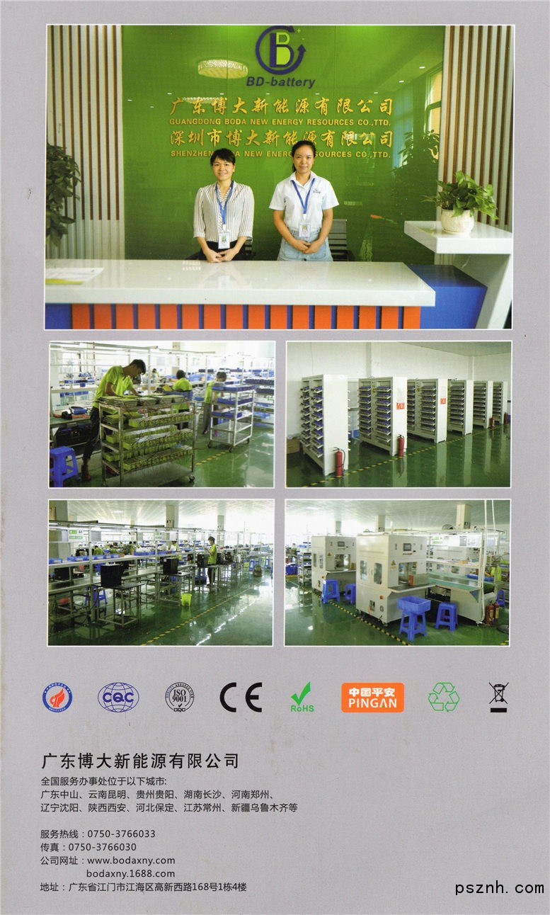 公司自成立以來,先后通過了:ISO9001質(zhì)量認證體系,ISO14001環(huán)境管理體系,鋰電池CQC,UN38.3認證以及一批國家級的光伏產(chǎn)品檢測報告,同時,我司產(chǎn)品還購買了由平安保險公司承保的保值1000萬的產(chǎn)品責(zé)任險!這些都是規(guī)范的象征,品質(zhì)的保障! 博大人,在快速成長的過程中,兢兢業(yè)業(yè),始終堅守理念(“科技領(lǐng)先,誠信經(jīng)營,嚴謹生產(chǎn),品質(zhì)卓越,服務(wù)至上”),公司目前擁有近20人的銷售團隊,相繼在全國設(shè)立九大辦事處(廣東中山,云南昆明,貴州貴陽,湖南長沙,河南鄭州,陜西西安,河北保定,江蘇常州以及新疆烏魯木齊)。憑借公司過硬的產(chǎn)品質(zhì)量和團隊扎實的工作,贏得了廣大太陽能路燈終端客戶的廣泛的認可,形成了“博大”的品牌效應(yīng),很多初次合作的客戶都是慕名前來的;品牌,是一種榮耀,也是一種責(zé)任,博大人,勇于擔當! 新能源事業(yè)的征程,任重而道遠,博大鋰電池,定會越做越優(yōu),博大人,定會越戰(zhàn)越勇!博大太陽能路燈,照亮您回家的路!