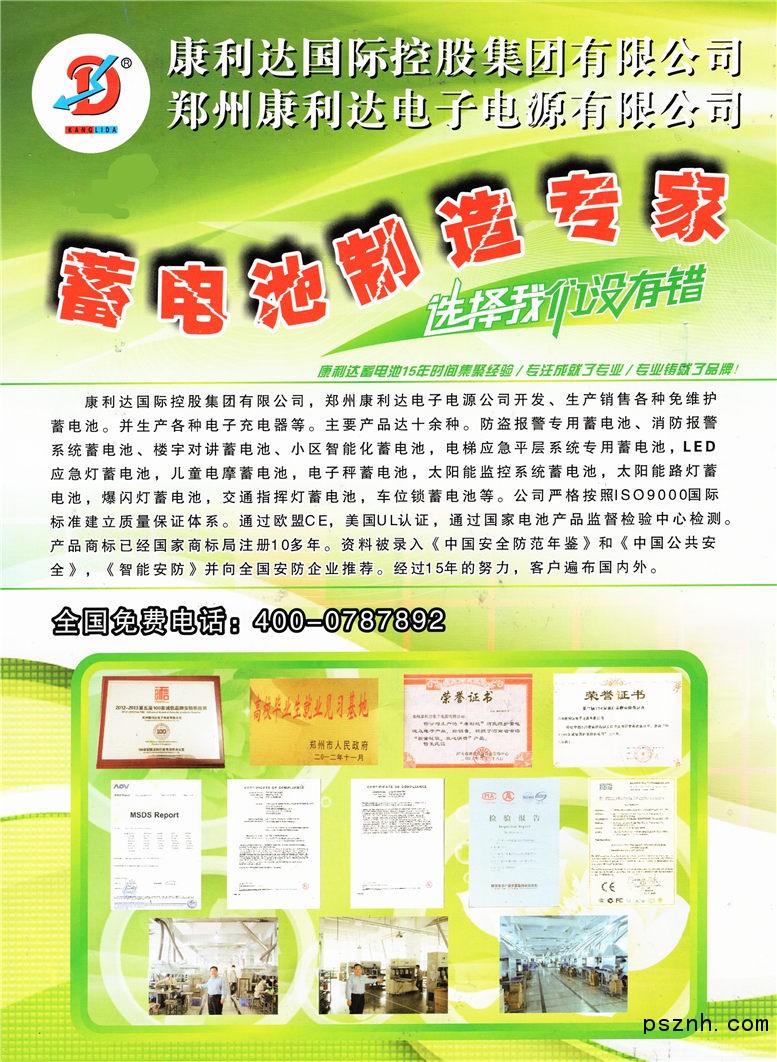 免維護蓄電池——由鄭州康利達電子電源有限公司開發(fā)、生產銷售。并生產各種、電子充電器等。KLD系列產品包括2V,4V、6V和12V四大系列,容量從0.8AH至250AH。質量穩(wěn)定,性能可靠!所有產品都已經通過CE和UL認證。主要產品達十余種。免維護蓄電池廣泛用于防盜、消防報警系統(tǒng)、樓宇對講、小區(qū)智能化,考勤機,電梯應急疏散系統(tǒng),應急燈,兒童電摩,人體秤,電子秤,車位鎖,爆閃燈,太陽能等備電。公司嚴格按照ISO9000國際標準建立質量保證體系。產品商標已經國家商標局注冊,并出口歐洲,美洲等地區(qū)。成為行業(yè)內的名牌產品,產品資料被錄入《中國公共安全》《智能安防》有常年宣傳,并向全國安防企業(yè)推薦。鄭州市政府授牌:高校畢業(yè)生就業(yè)見習基地。 歡迎國內外客戶,專家及各界朋友蒞臨指導,洽談訂貨。