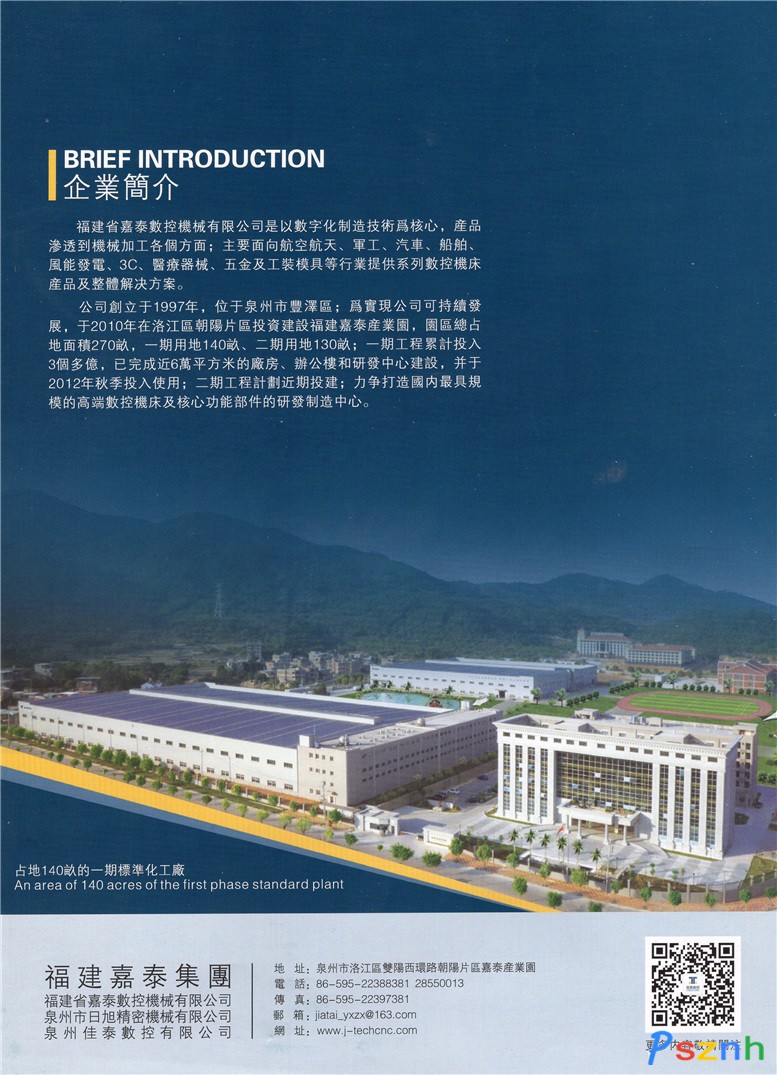 公司創(chuàng)立于1997年,位于泉州市豐澤區(qū);為實(shí)現(xiàn)公司持續(xù)創(chuàng)新發(fā)展,于2010年在洛江區(qū)朝陽(yáng)片區(qū)投資建設(shè)福建嘉泰數(shù)控產(chǎn)業(yè)園,園區(qū)總占地面積270畝,一期用地140畝、二期用地130畝。一期工程已投入3億多元,已完成6萬(wàn)多平方米的廠房、辦公樓和研發(fā)中心建設(shè),并于2012年秋季投入使用;二期工程將于近期投建并投產(chǎn);力爭(zhēng)打造國(guó)內(nèi)知名的高端數(shù)控機(jī)床及核心功能部件的研發(fā)制造中心。