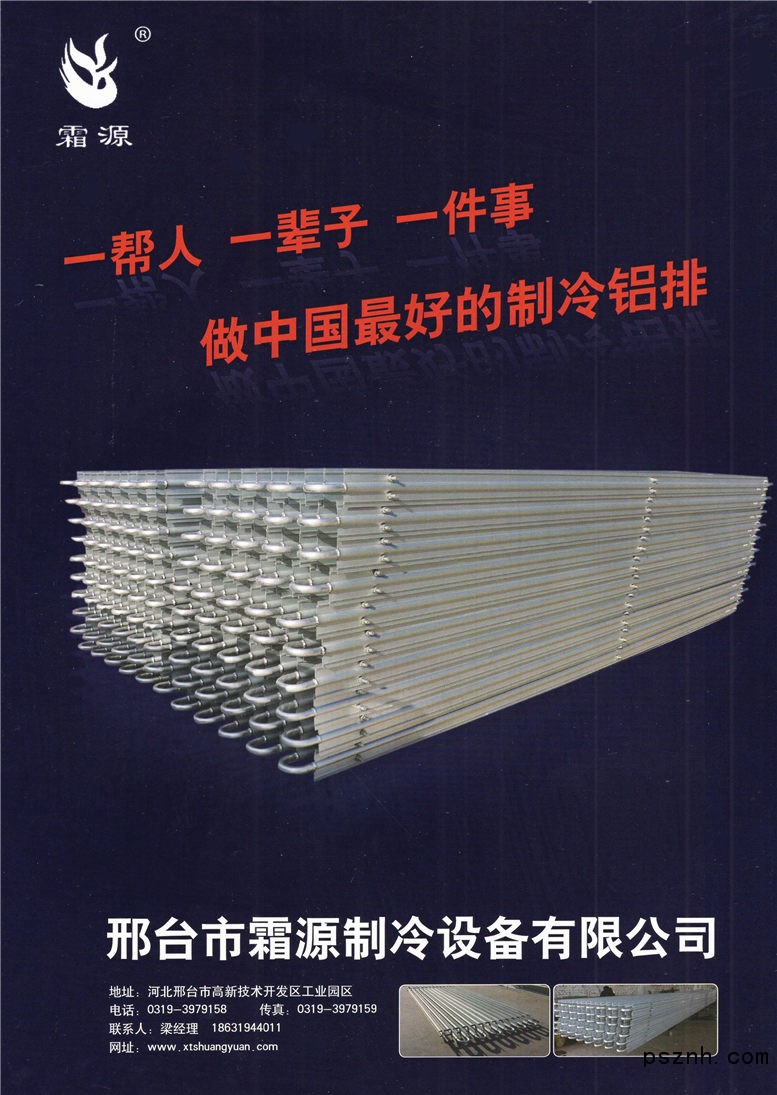 河北邢臺(tái)霜源制冷設(shè)備有限公司是生產(chǎn)(霜源牌)系列鋁合金蒸發(fā)器(鋁排)的專業(yè)廠家 。公司主要業(yè)務(wù)為:制冷工程的設(shè)計(jì)與安裝,非標(biāo)制冷設(shè)備的設(shè)計(jì),以及冷庫鋁合金蒸發(fā)器的研發(fā)與生產(chǎn),產(chǎn)品主要適用于各種裝配式冷庫(速凍庫,冷凍庫,保鮮冷藏庫),產(chǎn)品高效,省電,不占空間,系統(tǒng)干凈,延長壓縮機(jī)使用壽命節(jié)省冷媒,安裝方便,省時(shí),省力,省空間的特點(diǎn)深受制冷公司和廣大客戶的青睞。其生產(chǎn)的“霜源”牌鋁合金蒸發(fā)器為全國知名品牌,在國內(nèi)制冷行業(yè)中深受同仁的厚愛,其銷售范圍與銷量每年都大幅度的提升。