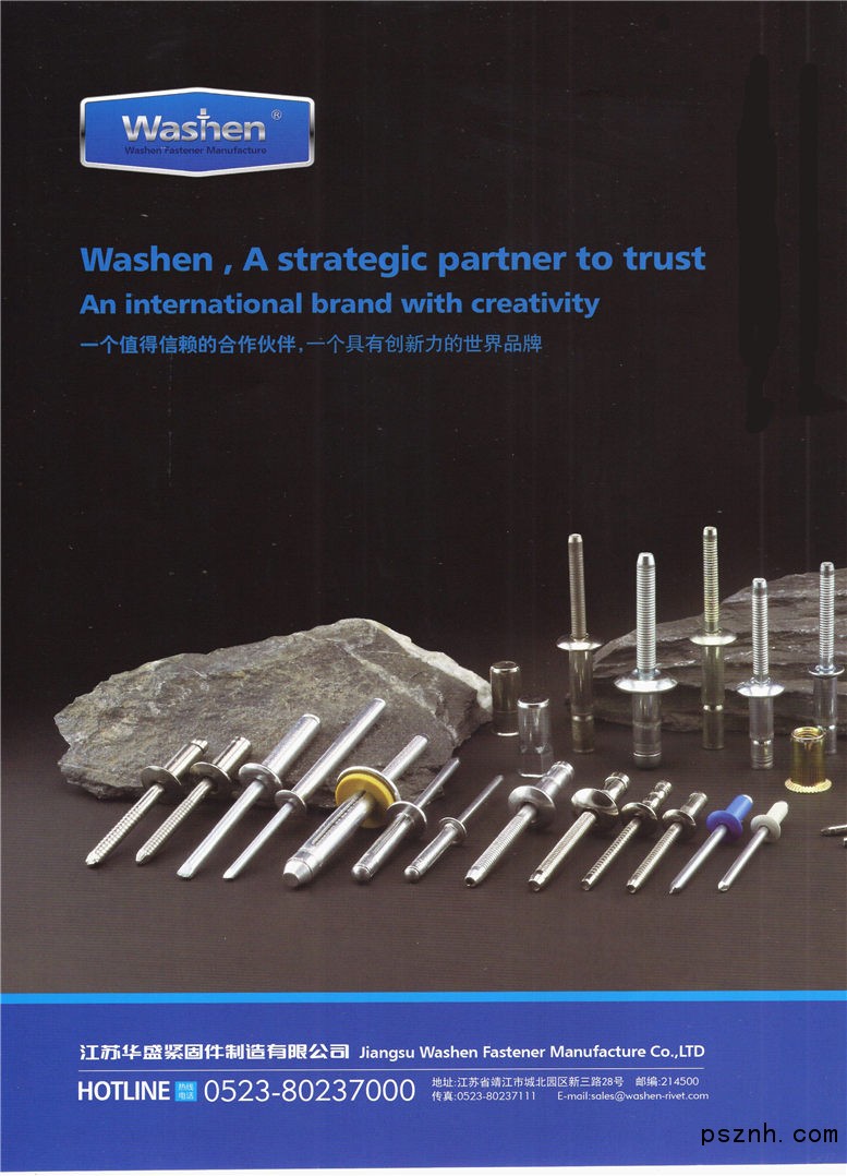 江蘇華盛緊固件制造有限公司是鉚釘、鐵海馬鉚釘、不銹鋼拉絲鉚釘、鐵拉絲鉚釘、鐵雙鼓型抽芯鉚釘、不銹鋼雙鼓型抽芯鉚釘、不銹鋼海馬鉚釘、全鋁拉絲鉚釘、氣動鉚釘槍、全鐵抽芯鉚釘、不銹鋼抽芯鉚釘、全鋁鉚釘、單鼓型抽芯鉚釘、封閉型抽芯鉚釘、開口型抽芯鉚釘、大帽開口型抽芯鉚釘、全鐵多鼓大帽檐鉚釘、燈籠鉚釘、不銹鋼口杯型拉絲鉚釘(內鎖型)、氣動鉚釘槍等產品專業(yè)生產加工的私營獨資企業(yè),公司總部設在靖江市城北園區(qū)新二路28號,靖江市華盛緊固件鉚釘制造有限公司擁有完整、科學的質量管理體系。靖江市華盛緊固件鉚釘制造有限公司的誠信、實力和產品質量獲得業(yè)界的認可。歡迎各界朋友蒞臨靖江市華盛緊固件鉚釘制造有限公司參觀、指導和業(yè)務洽談。