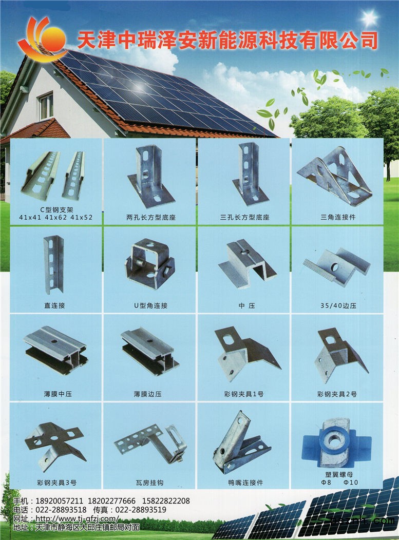 天津中瑞澤安新能源科技有限公司是槽鋼、導(dǎo)軌、外卷邊、太陽(yáng)能光伏支架、底座等產(chǎn)品專(zhuān)業(yè)生產(chǎn)加工的公司,擁有完整、科學(xué)的質(zhì)量管理體系。天津中瑞澤安新能源科技有限公司的誠(chéng)信、實(shí)力和產(chǎn)品質(zhì)量獲得業(yè)界的認(rèn)可,并通過(guò)ISO9001質(zhì)量體系認(rèn)證,產(chǎn)品質(zhì)量達(dá)到國(guó)際同類(lèi)產(chǎn)品標(biāo)準(zhǔn)。