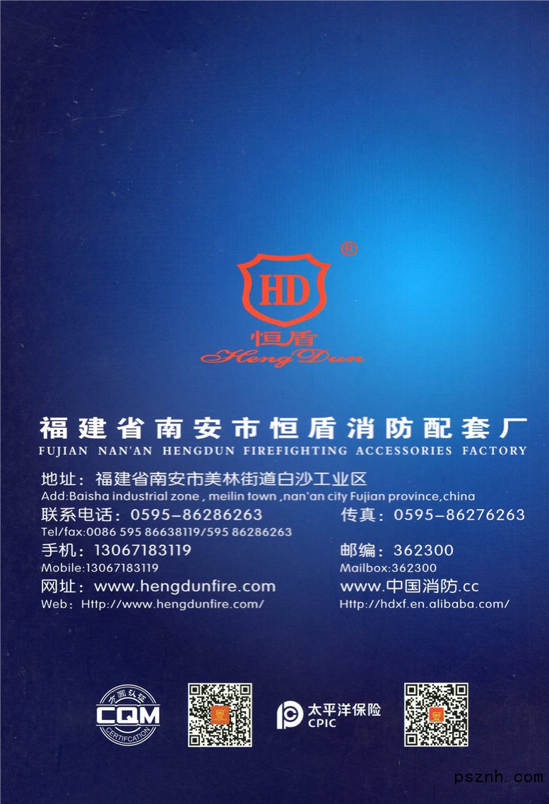 福建省南安市恒盾消防配套廠是對(duì)消防器材產(chǎn)品的加工制造有專業(yè)研究的生產(chǎn)廠家,產(chǎn)品通過“國家消防裝備質(zhì)量監(jiān)督檢驗(yàn)中心” 、“國家固定滅火系統(tǒng)和耐火構(gòu)件質(zhì)量監(jiān)督檢驗(yàn)中心” 、“ 國家消防電子產(chǎn)品質(zhì)量監(jiān)督檢驗(yàn)中心”檢驗(yàn)合格并獲得證書,研發(fā)出多項(xiàng)專利產(chǎn)品,深受廣大新老客戶的歡迎。 我廠的主要產(chǎn)品有:消防軟管卷盤,消防水帶卷盤,消火栓箱,消火栓按鈕,灑水噴頭,濕式報(bào)警閥,水流指示器,消防信號(hào)蝶閥、閘閥,雨淋報(bào)警閥,預(yù)作用閥組,室內(nèi)消火栓,室外消火栓,消防水泵接合器,消防水槍,內(nèi)扣式接口,獨(dú)立煙感,可燃?xì)怏w探測(cè)器以及優(yōu)勢(shì)組合的消防水帶、滅火器、應(yīng)急燈、感煙感溫火災(zāi)探測(cè)器等消防器材及消防配件,且售后服務(wù)真誠周到,是消防界朋友的黃金搭檔。 我廠是一家集科研、設(shè)計(jì)、生產(chǎn)、銷售為一體的實(shí)行“閩沙”“恒盾”雙品牌運(yùn)作的經(jīng)濟(jì)實(shí)體。以人為本,以市場(chǎng)為導(dǎo)向,以“求實(shí)、創(chuàng)新、誠信”為宗旨,愿與社會(huì)各界賢達(dá)共創(chuàng)未來!