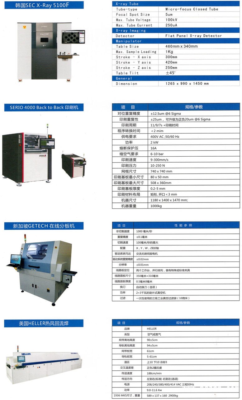 我們經(jīng)營(yíng)的設(shè)備有:韓國(guó)ESE全自動(dòng)印刷機(jī)、韓國(guó)SEC X-RAY、韓國(guó)三星貼片機(jī)、德國(guó)REHM回流焊、臺(tái)灣德律AOI/SPI、ANDA 點(diǎn)膠機(jī)/涂覆機(jī)等, 為SMT客戶提供一站式的總解決方案。