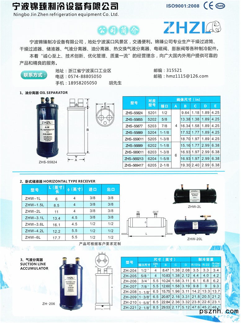 寧波錦臻制冷設(shè)備有限公司 油分離器 儲(chǔ)液器 氣液分離器 過濾器 壓力控制器