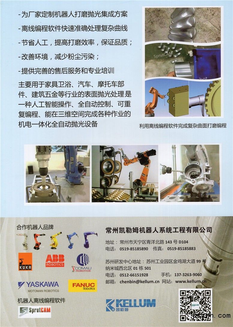 我司同時也是全球領(lǐng)先的SprutCAM(司普錄)機器人離線編程軟件的國內(nèi)總代理。運用機器人離線編程軟件給客戶提供更為高端和高效的解決方案。極大的擴展了機器人在各行業(yè)(打磨,切割,涂膠,噴涂,焊接,檢測等)的應用。比如在打磨拋光應用上,運用機器人離線編程軟件,可以實現(xiàn)更精確的軌跡,已達到客戶對打磨拋光的高端要求。比如在切割行業(yè)應用上,客戶應用編程軟件切割后的成品,極大的改善了切割的質(zhì)量,同時提高了效率,免去了重復示教等問題。