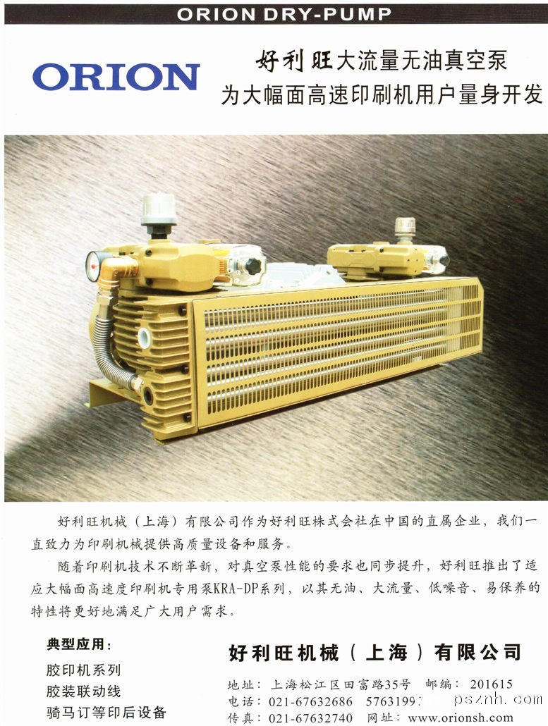 2009年10月好利旺大流量真空泵KRA9本土化,開(kāi)始配套進(jìn)口大幅面膠印機(jī)