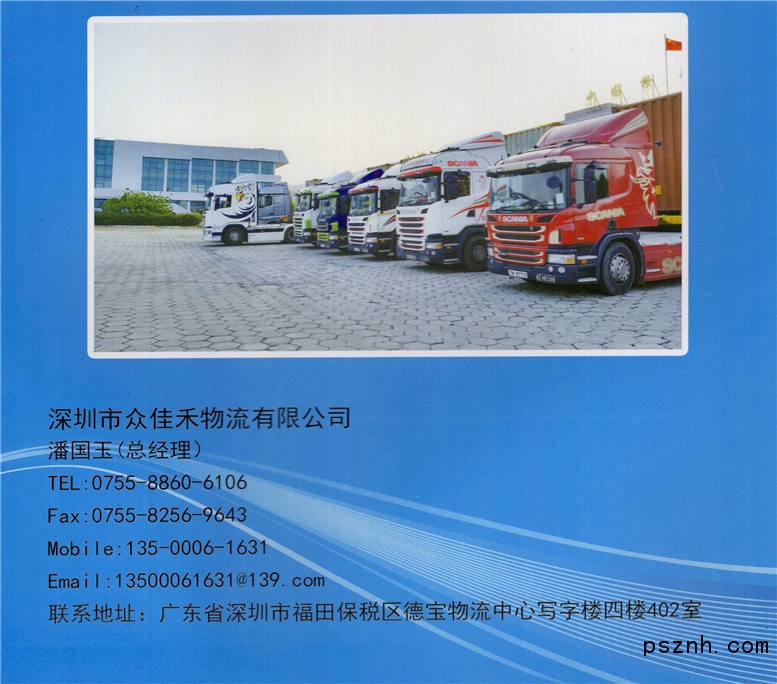 深圳市眾佳禾物流有限公司是一家經(jīng)營(yíng)精密儀器、飛機(jī)發(fā)動(dòng)機(jī)、光刻機(jī)等精密設(shè)備氣墊車(chē)運(yùn)輸?shù)木C合性實(shí)體物流企業(yè),公司引進(jìn)了溫控氣墊車(chē)、低平板氣墊車(chē)、飛翼氣墊車(chē)等,是華南地區(qū)種類(lèi)最為齊全的精密設(shè)備運(yùn)輸企業(yè)。承擔(dān)過(guò)南極考察直升機(jī)托運(yùn)任務(wù)。同時(shí)公司經(jīng)營(yíng)冷凍品和大件設(shè)備等特種運(yùn)輸。