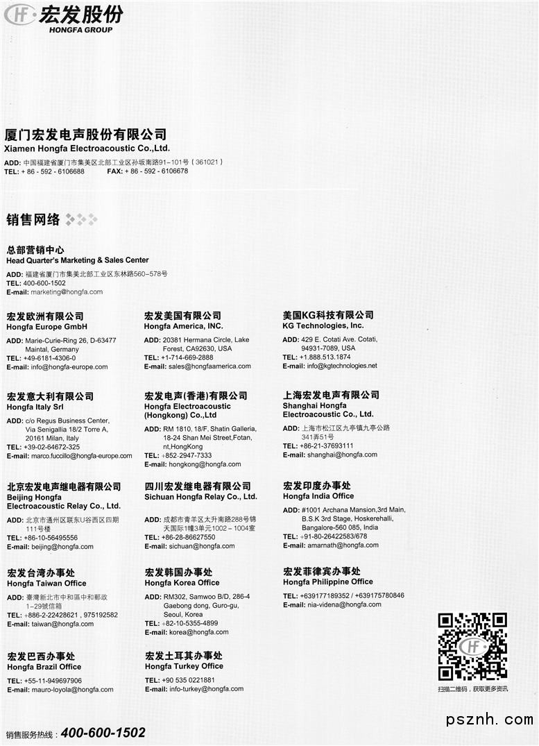 廈門宏發(fā)電聲股份有限公司 宏發(fā)股份(股票代碼:SH600885)成立于1984年,三十多年來,一直秉承著“不斷進取,永不滿足”的企業(yè)精神,已建成了品類齊全、配套完整的產(chǎn)業(yè)體系。目前,宏發(fā)擁有27家子公司,建立了十大研發(fā)生產(chǎn)基地,全球雇員逾12000人。宏發(fā)產(chǎn)品涵蓋繼電器、低壓電器、高低壓成套設(shè)備、電容器、精密零件及自動化設(shè)備等多個類別。其中,宏發(fā)主營產(chǎn)品繼電器品種多樣化,共有160多個系列、40,000多種常用規(guī)格,廣泛應(yīng)用于工業(yè)、能源、交通、信息、生活電器、醫(yī)療、國防等領(lǐng)域,年生產(chǎn)規(guī)模達18億只。