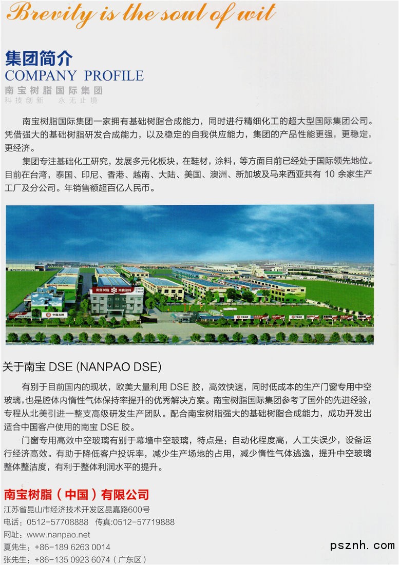 南寶樹脂(中國)有限公司是由臺灣南寶集團投資設(shè)立。臺灣南寶集團成立于1961年。經(jīng)過近四十年的發(fā)展,南寶公司已分別在泰國、印度尼西亞、越南、日本、歐美等地設(shè)有近20家生產(chǎn)工廠及分公司,擁有資產(chǎn)逾百億元人民幣。
