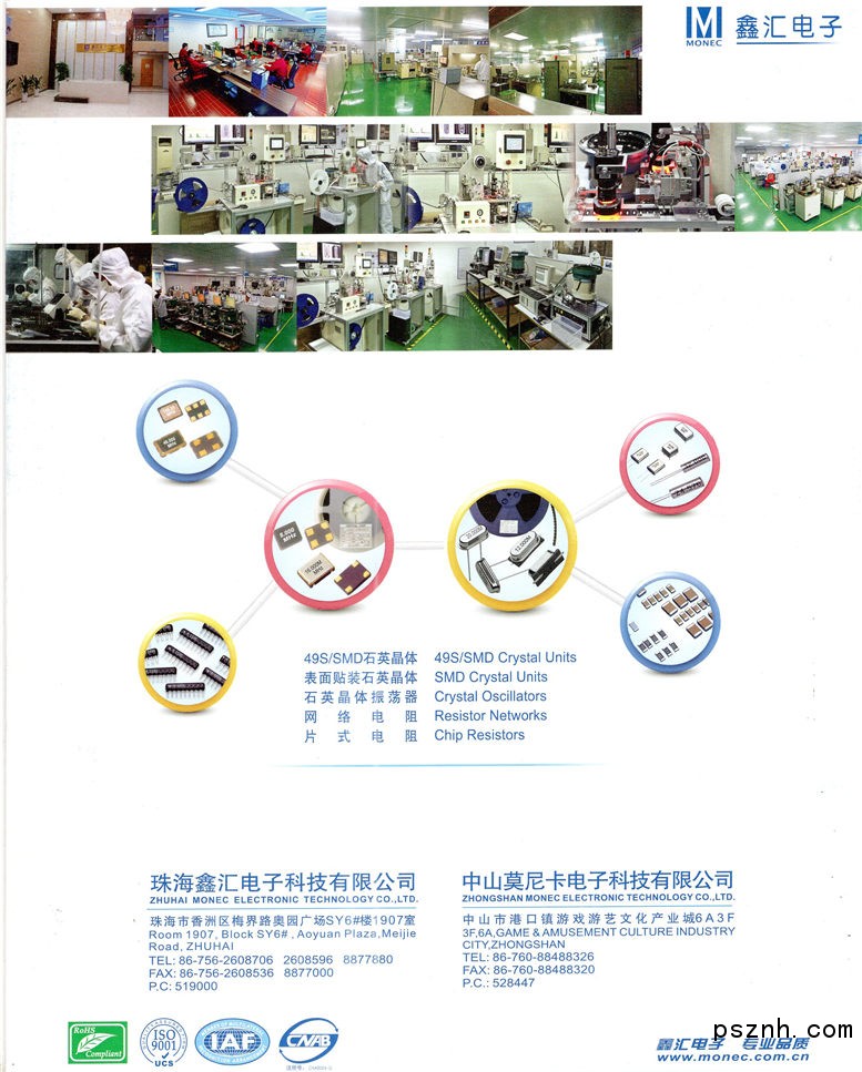 公司總部位于美麗的海濱城市珠海,現(xiàn)有員工三百余人,年?duì)I業(yè)額達(dá)到六千多萬元人民幣.數(shù)載耕耘,勵(lì)精圖治,創(chuàng)業(yè)至今,“鑫匯電子”的品牌信譽(yù)得到了同行的肯定以及客戶的一致好評(píng),在國內(nèi)外市場(chǎng)上也頗具影響力.公司從日本引進(jìn)了一整條具有二十一世紀(jì)先進(jìn)水平的生產(chǎn)線,進(jìn)一步確保了鑫匯電子在晶體和電阻行業(yè)內(nèi)的領(lǐng)先地位. 憑借先進(jìn)的生產(chǎn)經(jīng)營理念以及超強(qiáng)的研發(fā)能力,公司擁有著強(qiáng)勁的市場(chǎng)開拓能力,旗下產(chǎn)品不僅暢銷全國,還遠(yuǎn)銷歐美、日本、東南亞等國家和地區(qū)。