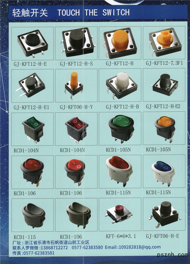 樂清市冠錦電子有限公司 船型開關(guān) 輕觸開關(guān) 插座