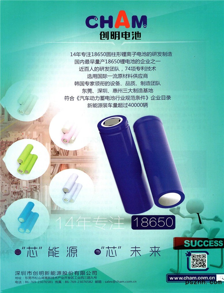 2016年6月東莞創(chuàng)明成功入選工信部發(fā)布的符合《汽車動力蓄電池行業(yè)規(guī)范條件》企業(yè)目錄(第四批)。目前,公司已有7款產(chǎn)品通過國家車用動力電池強(qiáng)制檢驗(yàn)。吉利汽車(康迪)、浙江豪情(康迪)、南京金龍、上海申龍、揚(yáng)州亞星、珠海廣通、陜浮通家、東風(fēng)連眾泰汽車等新能源車企,配套創(chuàng)明電芯的24款車型已進(jìn)入國家新能源車推廣應(yīng)用推薦錄。創(chuàng)明電池新能源濘連裝車已達(dá)5萬輛,處于國內(nèi)新能源連應(yīng)用市場的領(lǐng)先地位,在18650圓柱鋰離子電池這一細(xì)分行業(yè) ,創(chuàng)明動力電池的出貨量排在前五位。