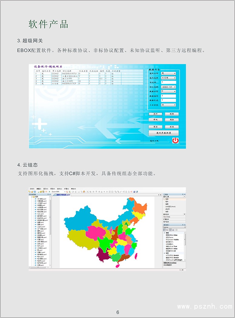 5、 云組態(tài);具備傳統(tǒng)組態(tài)的全部功能,支持C#的腳本,主要用于用戶有客制化需求但是不懂IT即可通過云組態(tài)來實現(xiàn)物聯(lián)呈現(xiàn)、行業(yè)工藝等方面的需求。
