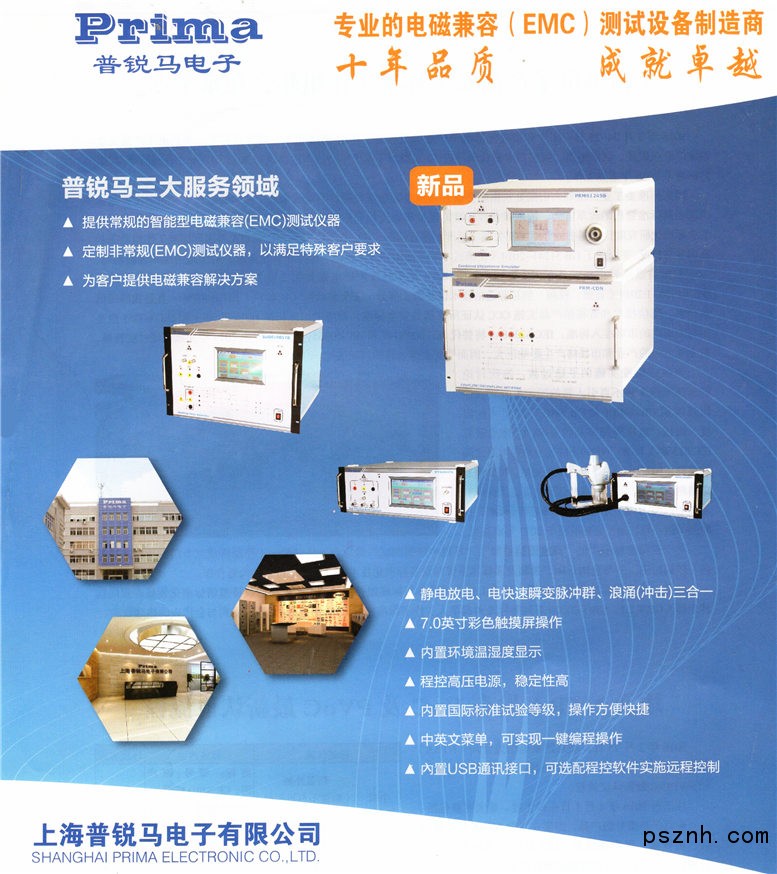 nic CO., Ltd.)坐落于上海市最主要的高新技術(shù)開發(fā)區(qū)之一的久富經(jīng)濟(jì)開發(fā)區(qū),是上海市科委認(rèn)定的高新技術(shù)企業(yè)。是一家集研發(fā)、生產(chǎn)、銷售和服務(wù)于一體的,專業(yè)提供液晶智能化電磁兼容測試儀器的高科技公司。公司已通過德國萊茵TUV ISO9001:2008國際標(biāo)準(zhǔn)質(zhì)量管理體系認(rèn)證,產(chǎn)品已通過華東計(jì)量院、北京計(jì)量院、廣州賽寶計(jì)量院等國內(nèi)權(quán)威機(jī)構(gòu)認(rèn)證。所有的產(chǎn)品在研發(fā)、生產(chǎn)、調(diào)試、檢驗(yàn)和試驗(yàn)等每一個生產(chǎn)環(huán)節(jié)都嚴(yán)格貫徹ISO9001:2008質(zhì)量體系指令。公司將一如既往潛心打造自身品牌,不斷提高企業(yè)管理運(yùn)作水平,積極配合客戶所需,繼續(xù)領(lǐng)行業(yè)之新,標(biāo)行業(yè)之異。