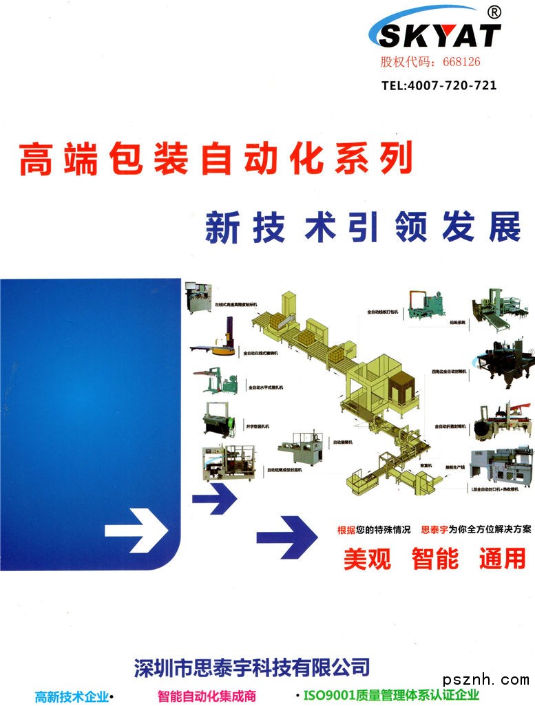 深圳市思泰宇科技有限公司(www.skyat.com.cn),主要從事高端包裝設(shè)備、檢測設(shè)備、汽車智能組裝線、自動化設(shè)備、激光加工設(shè)備、安防及交通設(shè)備的研發(fā)、生產(chǎn)、銷售。陸續(xù)通過深圳市高新技術(shù)企業(yè)、國家高新技術(shù)企業(yè)、ISO9001質(zhì)量管理體系認(rèn)證。