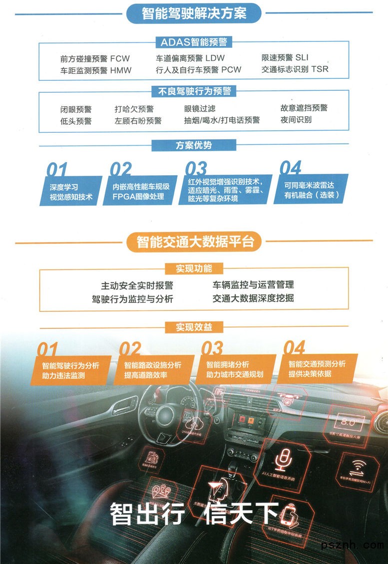 合肥市智信汽車科技有限公司坐落于國家大科學(xué)中心城市·安徽合肥,是按照國家發(fā)改委發(fā)布的《智能汽車創(chuàng)新發(fā)展戰(zhàn)略》要求成立的一家高科技公司,專業(yè)從事汽車輔助駕駛系統(tǒng)以及無人駕駛技術(shù)的研發(fā)、銷售和服務(wù)。公司目前在汽車主動(dòng)安全系統(tǒng)以及無人駕駛技術(shù)方面擁有自主知識產(chǎn)權(quán)的專業(yè)技術(shù),并開發(fā)出智能化的主動(dòng)安全系統(tǒng),包括全天候ADAS(輔助駕駛系統(tǒng))和DSM(不良駕駛行為預(yù)警系統(tǒng))產(chǎn)品,同時(shí)也擁有高安全性的無人駕駛技術(shù)方案。