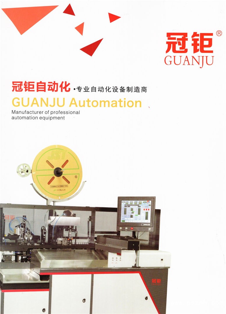 東莞市冠鉅自動(dòng)化設(shè)備有限公司創(chuàng)立于2006年,是集設(shè)計(jì)、研發(fā)、生產(chǎn)及銷售線材未端加工設(shè)備為一體的自動(dòng)化設(shè)備制造企業(yè)。公司本著服務(wù)至上,精益求精的的宗旨,公司本著服務(wù)至上,精益求精的的宗旨,為全球客戶提供最優(yōu)質(zhì)的產(chǎn)品和最貼心的服務(wù)。 本公司的主要產(chǎn)品有:全自動(dòng)裁線剝皮打端沾錫機(jī)、全自動(dòng)裁線剝皮打端機(jī)、超靜音端子機(jī)、全自動(dòng)裁線分線剝皮機(jī)、電腦剝線機(jī)、電腦切管機(jī)、超靜音端子機(jī)、2T橫直兩用卡式模、OTP橫直兩用卡式模以及非標(biāo)自動(dòng)化線材設(shè)備等。 公司采用日臺(tái)先進(jìn)技術(shù),自主研發(fā)、生產(chǎn)、改造的機(jī)型有三十多種,產(chǎn)品廣泛應(yīng)用于電子、電器、汽車、燈飾線材加工等方面,產(chǎn)品銷往國內(nèi)三十多個(gè)城市與地區(qū),并與韓國、墨西哥、印度等國家有貿(mào)易往來。