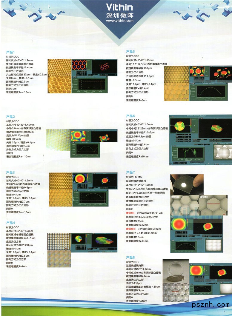 公司專注于聚合物微透鏡陣列的研發(fā)與生產(chǎn),材料通常選用PMMA和COC,微透鏡陣列可用于光信息處理、光計(jì)算、光互連、光數(shù)據(jù)傳輸,也可用于復(fù)印機(jī)/掃描儀/傳真機(jī)、光場(chǎng)照相機(jī),以及醫(yī)療衛(wèi)生器械中,并可廣泛用于通信、顯示和成像器件當(dāng)中。在消費(fèi)電子領(lǐng)域,常見的應(yīng)用有VR/AR、3D成像與顯示、微型投影儀、LED照明、迎賓光毯/天使之翼、夜視儀