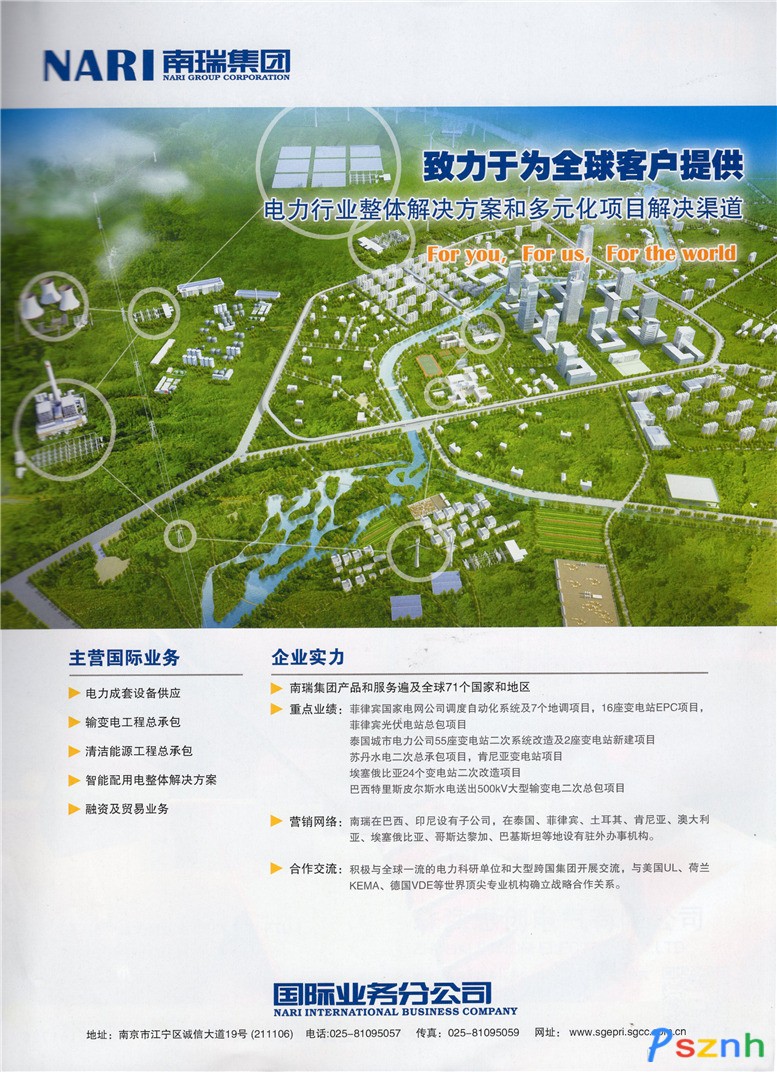 近年來,南瑞集團積極參與國家重大工程建設,依靠具有自主知識產權的核心技術和產品,承擔和完成了一大批重大工程項目。承擔了智能電網試點項目和各環(huán)節(jié)的建設任務,在智能電網發(fā)電、輸電、變電、配電、用電、調度和信息通信各技術領域都取得了突破性成果;為向家壩-上海、錦屏-蘇南、浙北-福州等特高壓交/直流輸電工程提供技術、裝備支撐;承擔世界首個五端柔性直流輸電工程(舟山重大科技示范項目);研制世界首套1000千伏特高壓串聯(lián)補償裝置以及750千伏可控并聯(lián)電抗器裝置并投入工程應用;承擔中國最大的智能電網示范項目(揚州示范工程);參與天津中新生態(tài)城智能電網綜合示范工程建設;負責世界級示范工程-張北風光儲輸示范工程二次設備總集成;開發(fā)完成國內首套智能變電站預制集成艙、風電有功智能控制系統(tǒng),提供智能變電站和電動汽車(充換電)完整解決方案;實現巨型發(fā)電機組勵磁系統(tǒng)國產化;擁有完整的智能化水電廠解決方案;成功實現了三峽工程重大設備國產化,獲重大設備國產化立功競賽優(yōu)勝獎;為南水北調工程,上海、廣州等城市水利信息化提供了優(yōu)良的產品和解決方案;承擔北京、上海、廣州、南京等多個城市軌道交通自動化系統(tǒng)項目建設;電線電纜產品得到廣泛應用;持續(xù)為菲律賓、泰國、老撾等國家提供電力總包服務。南瑞集團正以一流的技術和精益求精的專業(yè)風范,為每一位合作伙伴創(chuàng)造更大價值。