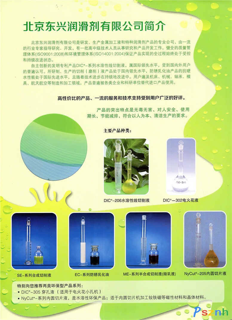 北京東興潤滑劑有限公司是研發(fā)和生產(chǎn)金屬加工液和特種潤滑劑產(chǎn)品的專業(yè)公司,具有雄厚的技術(shù)力量,有一流的行業(yè)專家指導(dǎo)、主持研發(fā)設(shè)計(jì),有一批高中級(jí)技術(shù)人員從事產(chǎn)品研發(fā)和生產(chǎn)控制工作,所研制和生產(chǎn)的切削液和電加工液產(chǎn)品處于國內(nèi)領(lǐng)先水平,防銹乳化油產(chǎn)品的抗硬水性能處在國際先進(jìn)水平,而且隨著行業(yè)技術(shù)的進(jìn)步在持續(xù)地改進(jìn)中;用戶遍及機(jī)床、機(jī)械、軸承、模具、航天航空等制造和加工領(lǐng)域,產(chǎn)品普遍被各類企業(yè)和科研單位替代進(jìn)口產(chǎn)品使用。