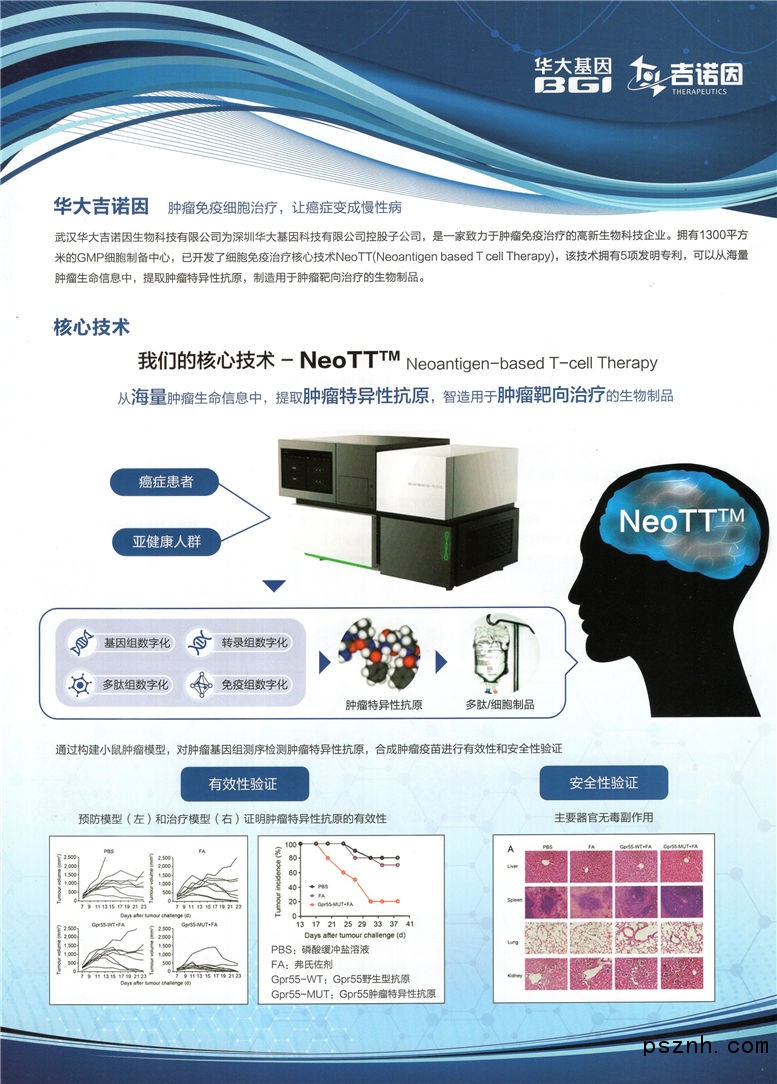 武漢華大吉諾因生物科技有限公司為深圳華大基因科技有限公司控股子公司,是一家致力于腫瘤免疫細(xì)胞治療的高新生物科技企業(yè)。 我們通過利用先進(jìn)生命數(shù)字化技術(shù),全方位激發(fā)人體免疫系統(tǒng)對(duì)抗腫瘤的活力, 開發(fā)靶向腫瘤特異抗原的全新先進(jìn)預(yù)防與治療方案,使病人從中獲益。 從2011年開始,我們著力于腫瘤基因組、生物信息技術(shù)和腫瘤免疫的研發(fā), 累計(jì)發(fā)表國際高水平文章32篇,在投文章3篇。經(jīng)過5年來的科研沉淀, 我們開發(fā)了細(xì)胞免疫治療核心技術(shù)NeoTT(Neoantigen based T cell Therapy), 從海量腫瘤生命信息中,提取腫瘤特異性抗原,智造用于腫瘤靶向治療的生物制品。 NeoTT技術(shù)擁有5項(xiàng)發(fā)明專利。同時(shí)我們擁有1300平方米的GMP細(xì)胞制備中心, 并已通過ISO9001、ISO14001和OHSAS18001認(rèn)證?;贜eoTT核心技術(shù), 我們與中山大學(xué)附屬腫瘤醫(yī)院生物治療科聯(lián)合開展腫瘤特異性抗原肽誘導(dǎo)的DC-CTL細(xì)胞治療I期臨床研究, 通過招募24例晚期黑色素瘤病例進(jìn)行DC-CTL細(xì)胞治療,驗(yàn)證NeoTT的安全性和觀察初步有效性。 我們擁有一支具有豐富行業(yè)經(jīng)驗(yàn)的專家團(tuán)隊(duì),核心成員有國家級(jí)領(lǐng)軍人才的生物信息學(xué)資深專家, 多年大藥廠藥物研發(fā)經(jīng)驗(yàn)的資深免疫學(xué)專家,生命大數(shù)據(jù)挖掘以及臨床醫(yī)學(xué)轉(zhuǎn)化方面的專家等。