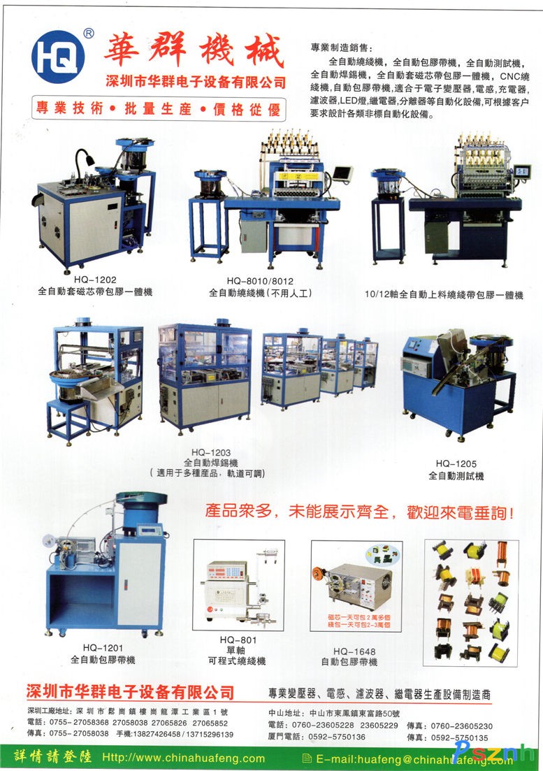 原華鋒成立于2001年公司堅(jiān)持“質(zhì)量第一,用戶至上”的原則,服務(wù)於用戶,讓用戶滿意,為用戶提供優(yōu)質(zhì)的產(chǎn)品和服務(wù).我們生產(chǎn)的產(chǎn)品無論是從外部形象設(shè)計(jì)和內(nèi)部元件選配及生產(chǎn)過程,都經(jīng)過嚴(yán)格的質(zhì)量把關(guān),我們深切地感受到品質(zhì)和誠(chéng)信是公司立足市場(chǎng)及成功發(fā)展的基石. 公司產(chǎn)品:全自動(dòng)繞線機(jī),全自動(dòng)包膠帶機(jī),全自動(dòng)焊錫機(jī),全自動(dòng)測(cè)試機(jī),CNC繞線機(jī),無鉛錫爐,切角機(jī)等等以及其它相關(guān)零備件。適用于變壓器,電感,濾波器,續(xù)電器等整廠設(shè)備可根據(jù)客戶要求,設(shè)計(jì)自動(dòng)化流水線設(shè)備。 公司承諾:凡本公司產(chǎn)品自售出之日起,機(jī)體保用一年,終身維護(hù).