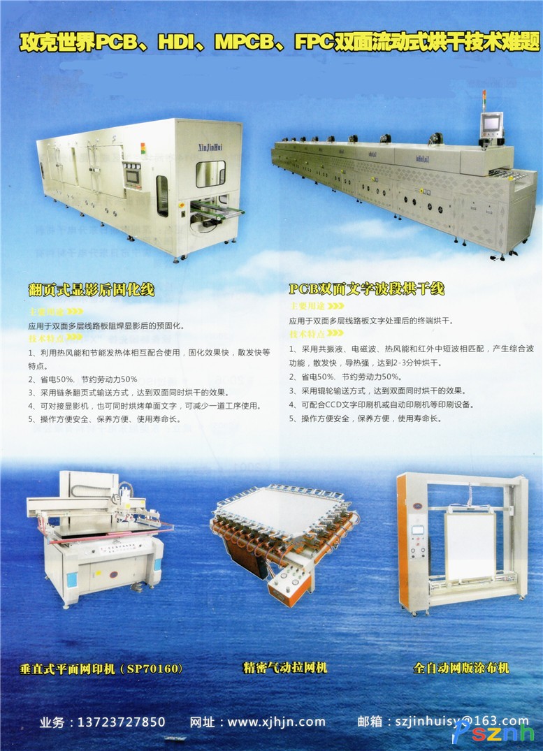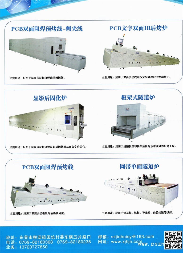 本公司生產(chǎn)的波段隧道爐系列有PCB雙面阻焊波段烘干線、翻頁式顯影后固化線、PCB雙面文字波段烘干線、MPCB FPC單面波段烘干線,根據(jù)客戶的產(chǎn)能及場地來選擇不同的倉數(shù)(即不同的烘干長度)。 本公司生產(chǎn)的烘干線在使用中達到以下優(yōu)點:縮短了烘烤時間、節(jié)能達到55%以上、可對接自動化設(shè)備連線生產(chǎn)、減少大批勞動力、提高成品率、節(jié)約生產(chǎn)場地、提高產(chǎn)能、減少輸送掛具、穩(wěn)定產(chǎn)品質(zhì)量、降低生產(chǎn)成本、提高利潤5%至10%、安全防火排泄暢通。