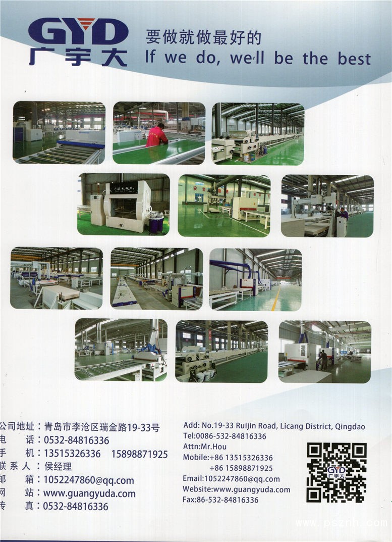 青島廣宇大機(jī)械設(shè)備有限公司是專業(yè)化生產(chǎn)室內(nèi)裝飾板及建筑外墻裝飾板涂裝機(jī)械設(shè)備、軟瓷設(shè)備的企業(yè)。