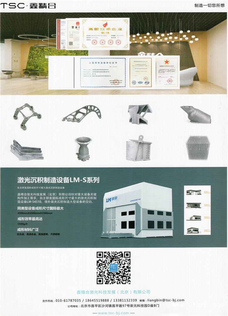 鑫精合激光科技發(fā)展(北京)有限公司(以下簡(jiǎn)稱“鑫精合”)以增材制造、特種連接、金屬鈑金成型、復(fù)合材料加工、復(fù)雜機(jī)械加工、精密裝配等先進(jìn)制造工藝為依托,面向航天、航空、航海、核電等高端制造領(lǐng)域,從事產(chǎn)品設(shè)計(jì)與優(yōu)化、原材料制備、結(jié)構(gòu)分總體制造與修復(fù)、增材制造設(shè)備生產(chǎn)、軟件定制開發(fā)、技術(shù)咨詢與服務(wù)的國(guó)家級(jí)高新技術(shù)企業(yè);是中國(guó)領(lǐng)先的金屬增/減材制造技術(shù)全套解決方案提供商。2017年底經(jīng)過公司資源整合,正式成立精合集團(tuán),集團(tuán)總部位于北京,在天津、重慶、沈陽、西安、濰坊、上海設(shè)有分子公司。