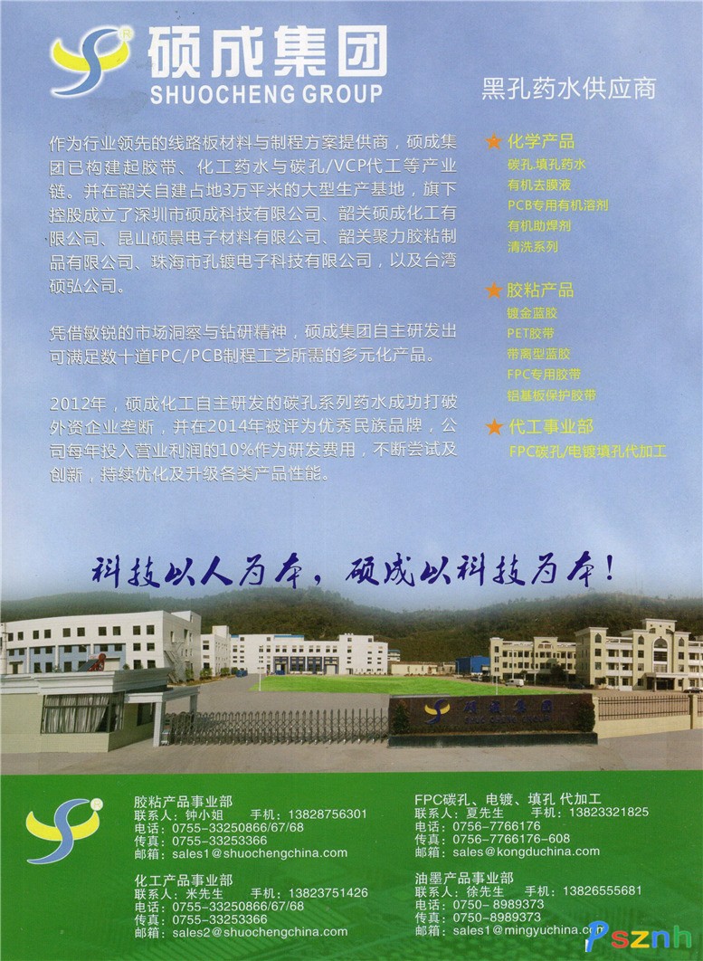 路有徑,拓?zé)o疆!十余年的成長(zhǎng)之路,使我們深知市場(chǎng)所需、客戶(hù)所想!面對(duì)新的機(jī)遇和挑戰(zhàn),碩成集團(tuán)將以持續(xù)推動(dòng)PCB/FPC行業(yè)發(fā)展為己任,致力于成為全球領(lǐng)先的線(xiàn)路板材料與制程方案提供商!