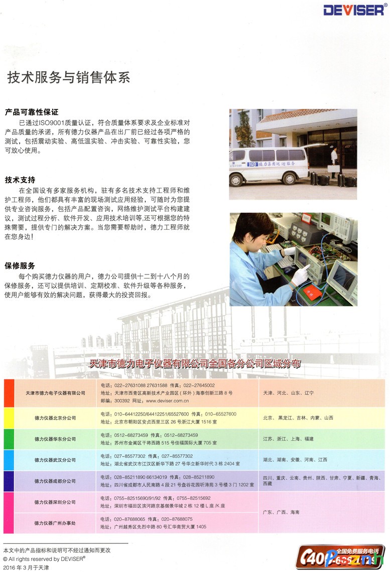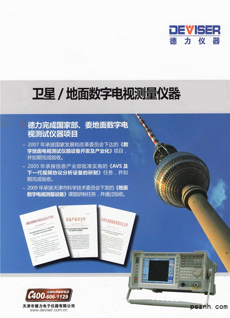 德力(DEVISER)公司目前擁有約 23000 平米的研發(fā)和生產(chǎn)基地,在數(shù)字電視、頻譜和網(wǎng)絡分析、無線電技術、光通訊測量技術、移動通訊測量技術領域擁有一流的開發(fā)團隊、一流的生產(chǎn)線和行業(yè)領先的先進技術及專利。在中國的廣電儀器行業(yè)市場占有率第一。在 HFC 寬帶網(wǎng)絡監(jiān)測系統(tǒng)、數(shù)字電視分析儀、OTDR 測試儀、手持頻譜儀、網(wǎng)絡儀、天饋測試儀等產(chǎn)品也處于國際行業(yè)先進水準。