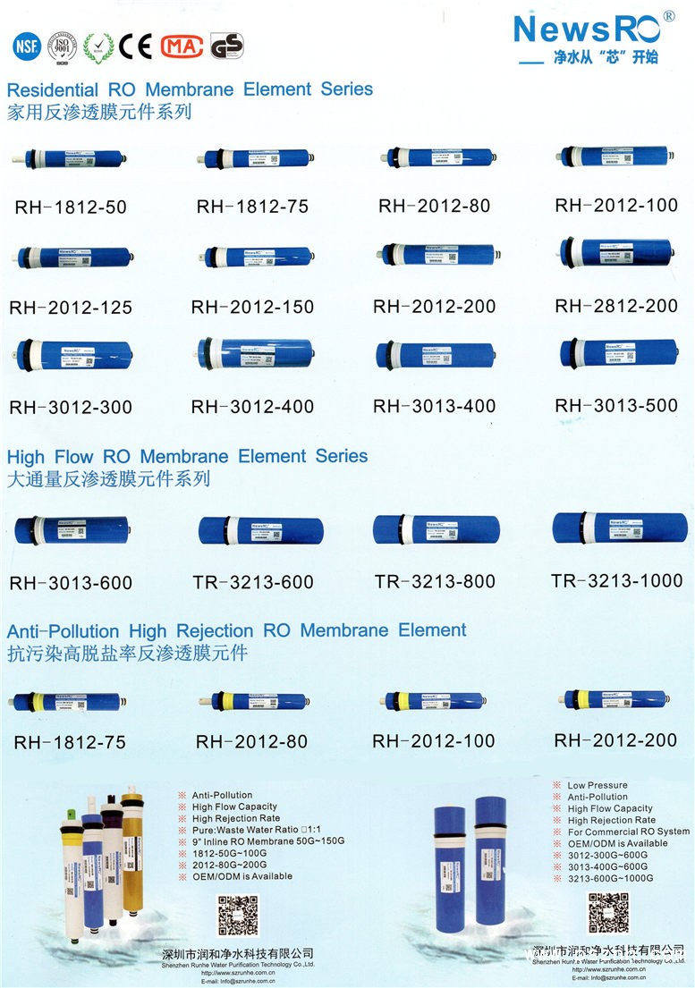 深圳市潤(rùn)和凈水科技有限公司 家用反滲透純水機(jī) 反滲透膜 商業(yè)用水處理設(shè)備 凈水器 直飲機(jī) 配件