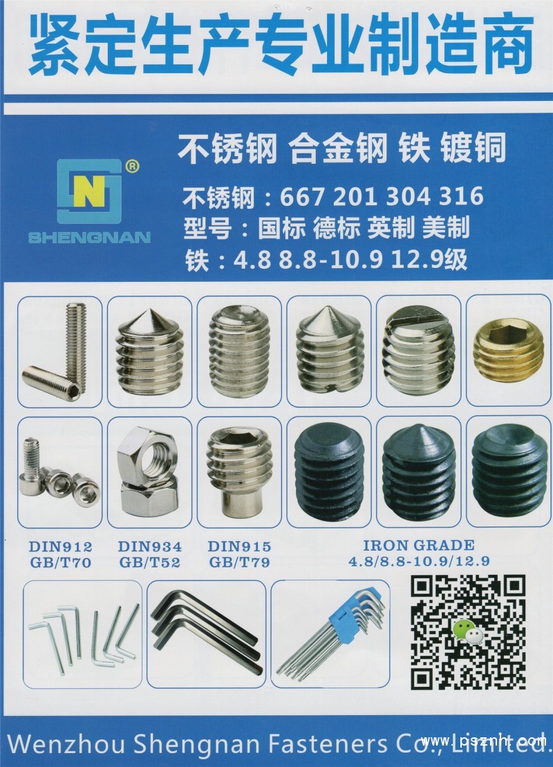 溫州盛南標(biāo)準(zhǔn)件有限公司 內(nèi)六角平端緊定螺釘 開(kāi)槽平端緊定螺釘 鍍銅緊定 開(kāi)槽錐端緊定螺釘 螺釘類(lèi) 螺母類(lèi) 螺栓類(lèi) 墊圈類(lèi)點(diǎn)擊:675 評(píng)論:0 查看原圖 |
