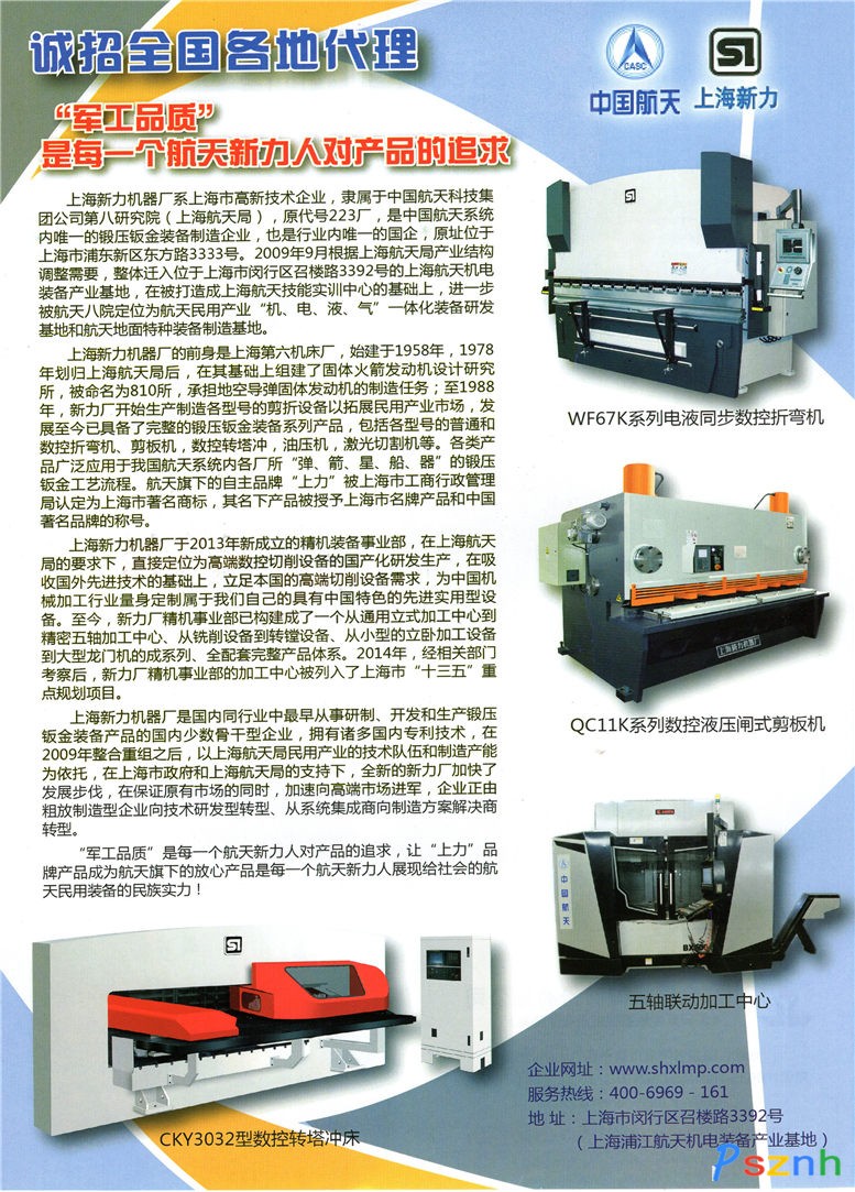 重組前上海新力機(jī)器廠的前身是上海第六機(jī)床廠,始建于1958年,1978年劃歸上海航天局后,在其基礎(chǔ)上組建了固體火箭發(fā)動(dòng)機(jī)設(shè)計(jì)研究所,被命名為810所,承擔(dān)地空導(dǎo)彈固體發(fā)動(dòng)機(jī)的制造任務(wù);至1988年,新力廠開始生產(chǎn)制造各型號(hào)的剪折設(shè)備以拓展民用產(chǎn)業(yè)市場(chǎng),發(fā)展至今已具備了完整的鍛壓鈑金裝備系列產(chǎn)品,包括各型號(hào)的普通和數(shù)控折彎?rùn)C(jī)、剪板機(jī),數(shù)控轉(zhuǎn)塔沖,油壓機(jī),激光切割機(jī)等。各類產(chǎn)品廣泛應(yīng)用于我國航天系統(tǒng)內(nèi)各廠所“彈、箭、星、船、器”的鍛壓鈑金工藝流程。航天旗下的自主品牌“上力”被上海市工商行政管理局認(rèn)定為上海市著名商標(biāo),其名下產(chǎn)品被授予上海市名牌產(chǎn)品和中國著名品牌的稱號(hào)。