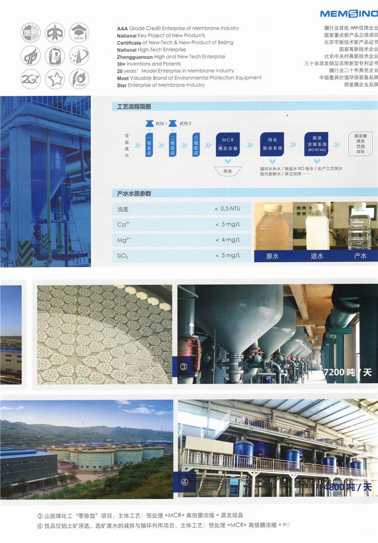 采用TIPS法制備的聚偏氟乙烯(PVDF)超濾膜產(chǎn)品是中環(huán)膜核心膜制造技術(shù)。因其更加高效節(jié)能,更長使用壽命以及更低維護(hù)成本的特質(zhì),獲得廣泛的應(yīng)用與推廣,已經(jīng)在國內(nèi)20個(gè)行業(yè)和全球十多個(gè)地區(qū)的上百個(gè)案例中使用,2014年該產(chǎn)品列入國家重點(diǎn)新產(chǎn)品立項(xiàng)項(xiàng)目。同時(shí)利用自身在濃鹽水減量化方面的多年技術(shù)和經(jīng)驗(yàn)積累,開發(fā)出MCR(膜化學(xué)反應(yīng)器)新型污水處理技術(shù)和裝備,在陜西、山西、內(nèi)蒙、山東等煤化工和電廠含鹽廢水減量化及液體“零排放”項(xiàng)目中取得成功應(yīng)用并起到很好的示范效應(yīng)。截止日前共獲取了以“中空纖維膜制備方法、中空纖維膜及潛溶劑組合物”等膜分離方向?yàn)榇淼?0余項(xiàng)發(fā)明及實(shí)用新型專利。中環(huán)膜位于北京密云的研發(fā)生產(chǎn)基地,中空纖維超濾膜產(chǎn)能達(dá)到每年100萬平方米,