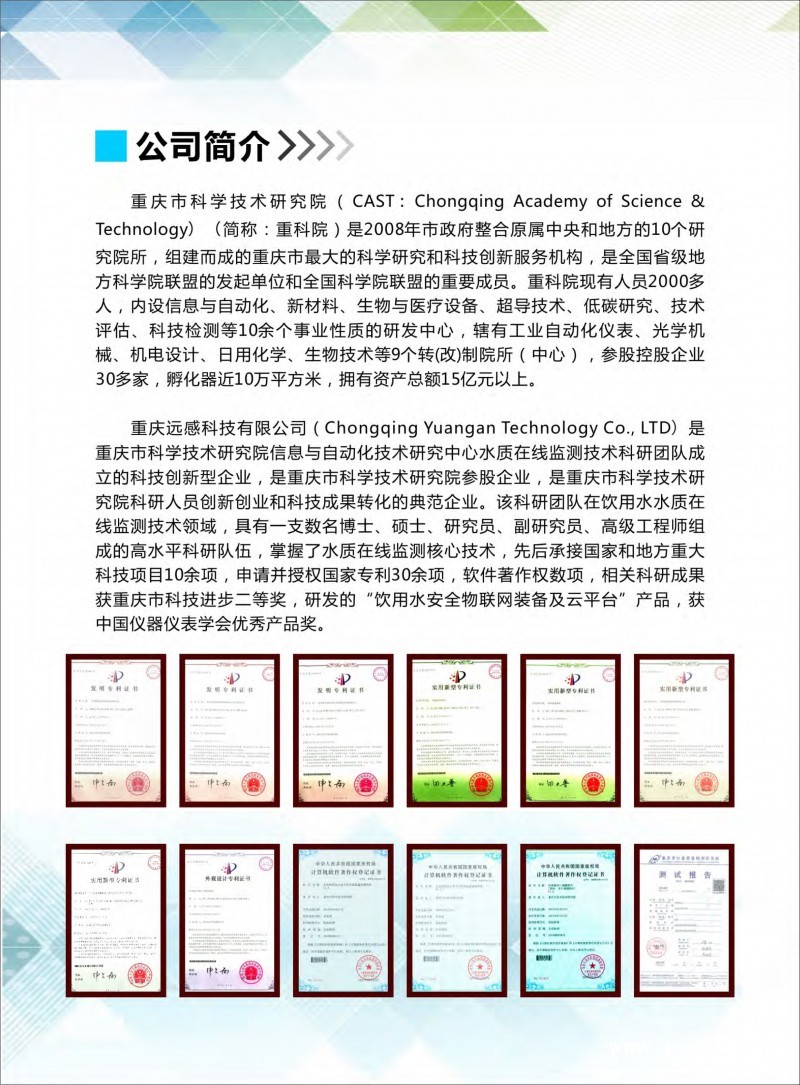 重慶遠(yuǎn)感科技有限公司 水質(zhì)在線(xiàn)分析儀表、水質(zhì)在線(xiàn)監(jiān)測(cè)傳感器、常規(guī)水質(zhì)在線(xiàn)分析儀表、試劑法水質(zhì)在線(xiàn)分析儀表、智慧水質(zhì)云平臺(tái)點(diǎn)擊:866 評(píng)論:0 查看原圖 |