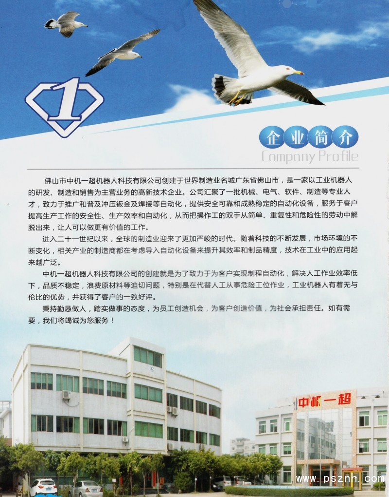 佛山市中機一超機器人科技有限公司創(chuàng)建于世界制造業(yè)名城廣東省佛山市,是一家致力于工業(yè)機器人研發(fā)、制造和銷售為主營業(yè)務的高新技術企業(yè)。公司匯聚了一批機械、電氣、軟件和制造等專業(yè)人才,致力于推廣和普及沖壓自動化生產(chǎn),提供安全可靠和成熟穩(wěn)定的沖壓機械手等設備,服務于客戶提高沖壓工作的安全性、效率和自動化程度,從而把操作工的雙手從簡單、重復和危險的勞動中解放出來,讓人可以從事更有價值的工作!
