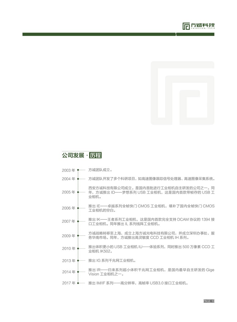 方誠十年如一日的堅(jiān)持自主研發(fā)路線,始終專注于自主產(chǎn)權(quán)工業(yè)相機(jī)技術(shù)的研究,堅(jiān)持以質(zhì)量為導(dǎo)向,產(chǎn)品上市前均接受408項(xiàng)測試,對(duì)技術(shù)產(chǎn)品層層把關(guān)和嚴(yán)控,同時(shí),在國內(nèi)率先承諾三年超長的質(zhì)保期,以提供領(lǐng)先的技術(shù)、高質(zhì)量的產(chǎn)品和完美的服務(wù)來信守對(duì)客戶的承諾。