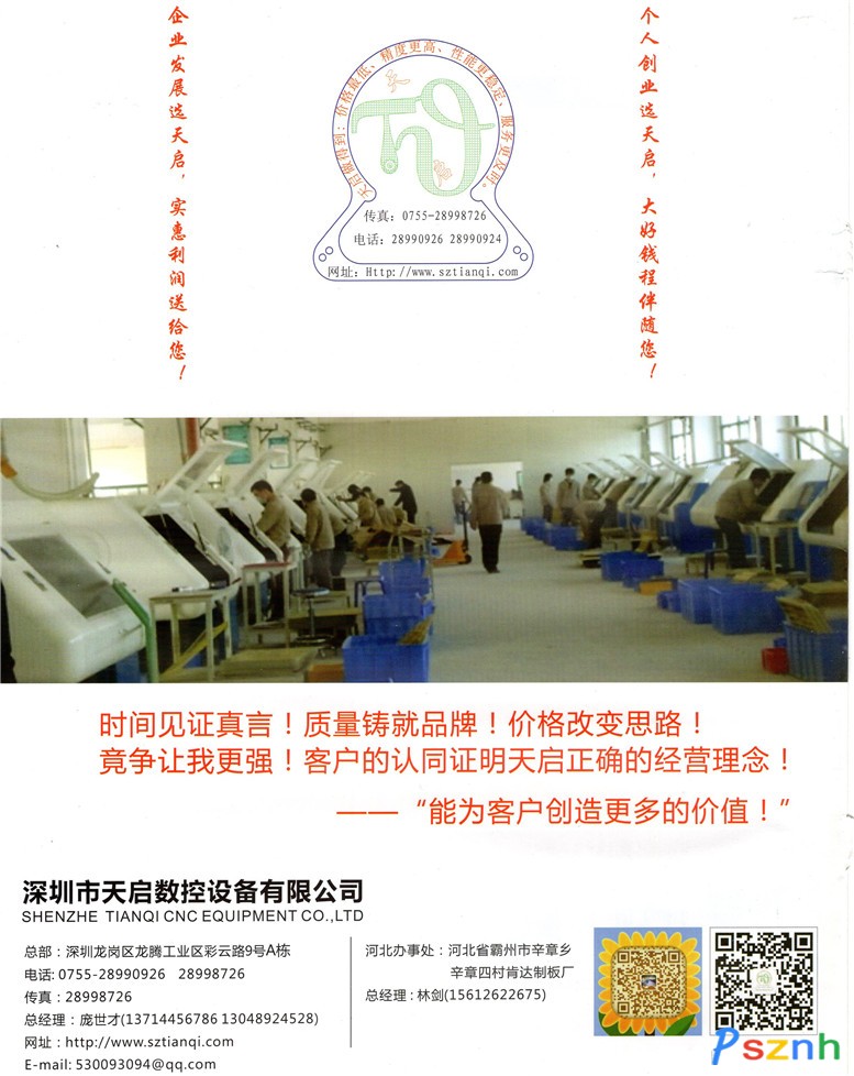 深圳市天啟數(shù)控設(shè)備有限公司是一家集技術(shù)研究、開(kāi)發(fā)、生產(chǎn)和銷(xiāo)售于一體的高科技企業(yè)。公司本著誠(chéng)信、進(jìn)取的精神,堅(jiān)持“以人為本,客戶(hù)至上”的信念,開(kāi)創(chuàng)行業(yè)先鋒,通過(guò)不斷的改進(jìn),使產(chǎn)品性能、質(zhì)量均居同行之首。公司的每一款產(chǎn)品真正的體現(xiàn)著現(xiàn)代人的消費(fèi)觀念:“價(jià)廉物美”。天啟數(shù)控將在競(jìng)爭(zhēng)激烈的市場(chǎng)中立于不??!
