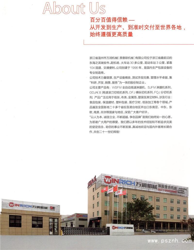 公司主要產(chǎn)品有:WSFM全自動無軸高速淋膜機,SJFM淋膜機系列,DFJ橫縱切機系列,QFJ分切機系列;GDJB滾刀機等。產(chǎn)品廣泛應(yīng)用于紙張,布類,金屬箔,塑袋及其它材料。產(chǎn)品遍及全國各地二十多個省份及港臺地區(qū)并出口東南亞,中東,東歐,南美,非洲等國家與地區(qū),深受廣大客戶好評。