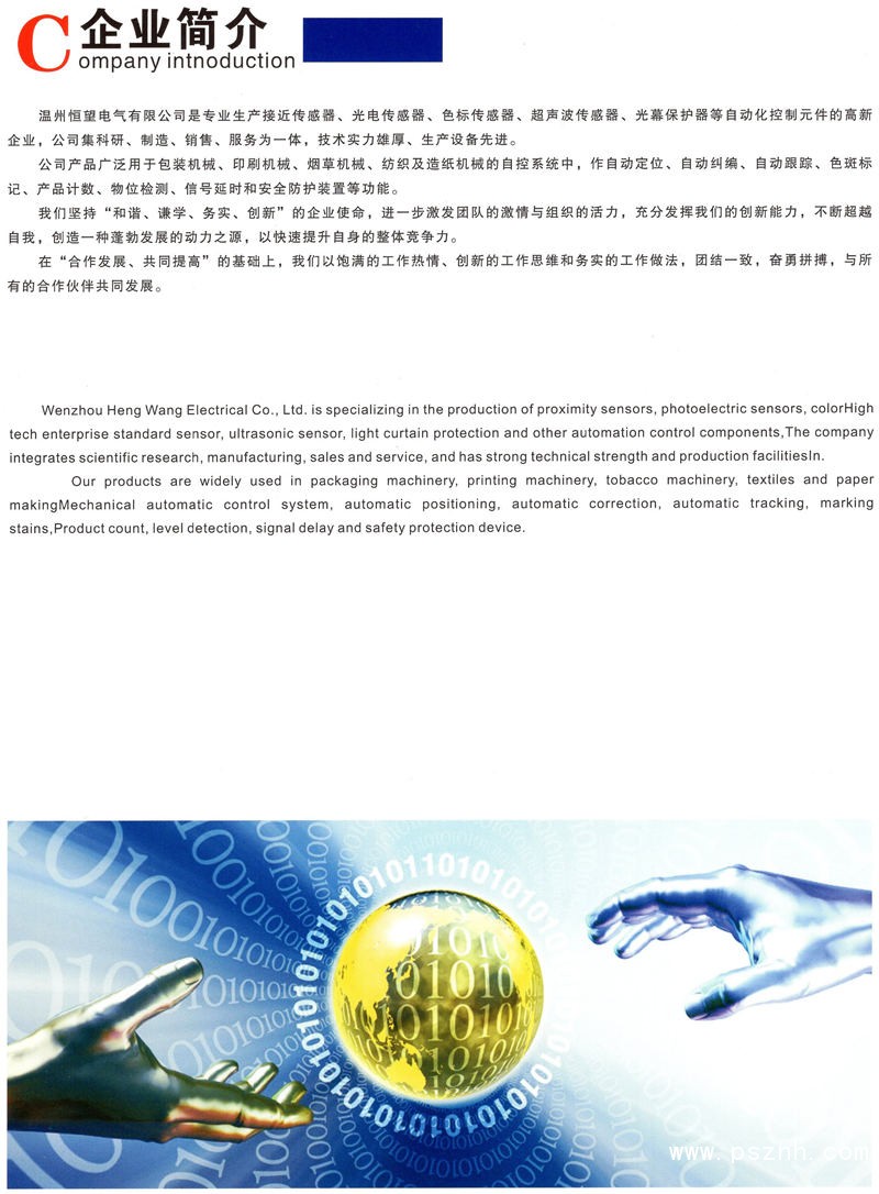 溫州恒望電氣有限公司是專業(yè)生產光電開關、接近開關、色標傳感器、光幕保護器、變頻調速控制器等自動化控制元件的高新企業(yè),公司集科研、制造、銷售、服務為一體,技術實力雄厚、生產設備先進。