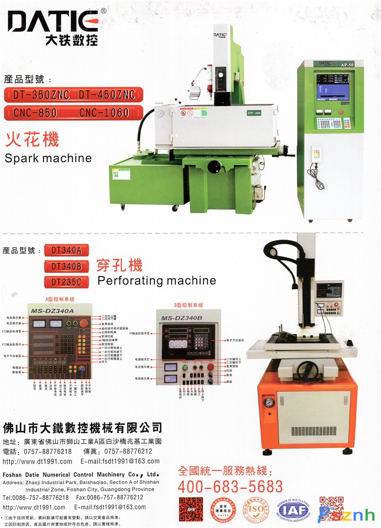 廣東大鐵數(shù)控機(jī)械有限公司成立于2006年,是一家專注于電加工機(jī)床、中走絲、線切割、電火花機(jī)、穿孔機(jī)、數(shù)控機(jī)床的研究、開發(fā)、生產(chǎn)及銷售的高科技企業(yè),是佛山市機(jī)械協(xié)會(huì)的副會(huì)長單位。總部及研發(fā)基地設(shè)立于風(fēng)景秀麗的佛山南海高新區(qū),銷售服務(wù)網(wǎng)絡(luò)布遍全國各地、設(shè)有30多個(gè)服務(wù)部、營銷中心及分公司。公司技術(shù)和研發(fā)實(shí)力雄厚,擁有3項(xiàng)發(fā)明專利、6項(xiàng)創(chuàng)新專利及其它相關(guān)專利核心技術(shù)共16項(xiàng),是國內(nèi)立項(xiàng)攻關(guān)特種放電加工技術(shù)的企業(yè),并被認(rèn)定為“國家高新技術(shù)企業(yè)”。