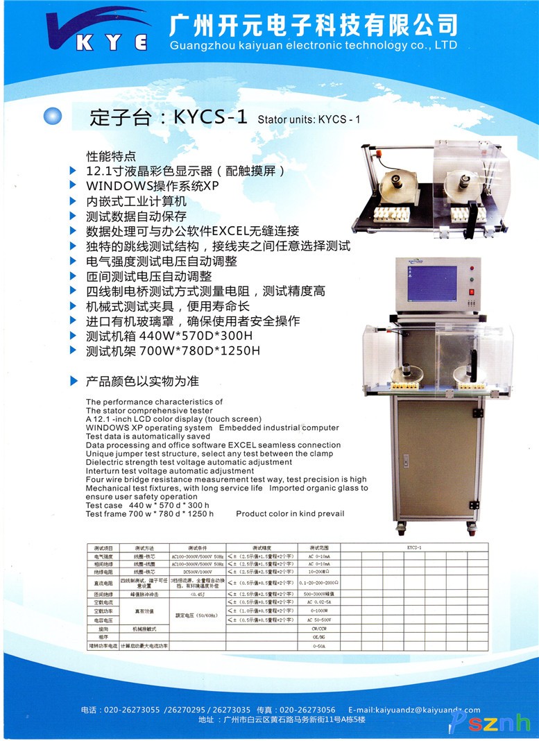 主要產(chǎn)品為基于嵌入式微處理的匝間絕緣測試儀,直流小電機(jī)綜合測試儀,電機(jī),定子,電樞綜合測試儀,家電安檢綜合測試儀等?;诠I(yè)控制計(jì)算機(jī)的各種測試臺與檢測線。 為您提供高品質(zhì)產(chǎn)品和技術(shù)服務(wù),是廣州開元電子科技有限公司的最高理想。依靠先進(jìn)的技術(shù)管理和組織管理,以顧客為中心,傾聽顧客當(dāng)前和未來的需求,滿足顧客要求,并爭取超越顧客的期望,始終是我們不懈的追求。 “誠信,品質(zhì),開拓,服務(wù)”已成為公司全體員工認(rèn)同的精神理念。我們的產(chǎn)品和服務(wù),將為您的產(chǎn)品品質(zhì)提供保障,廣州市開元電子科技有限公司真誠感謝您的理解與支持。