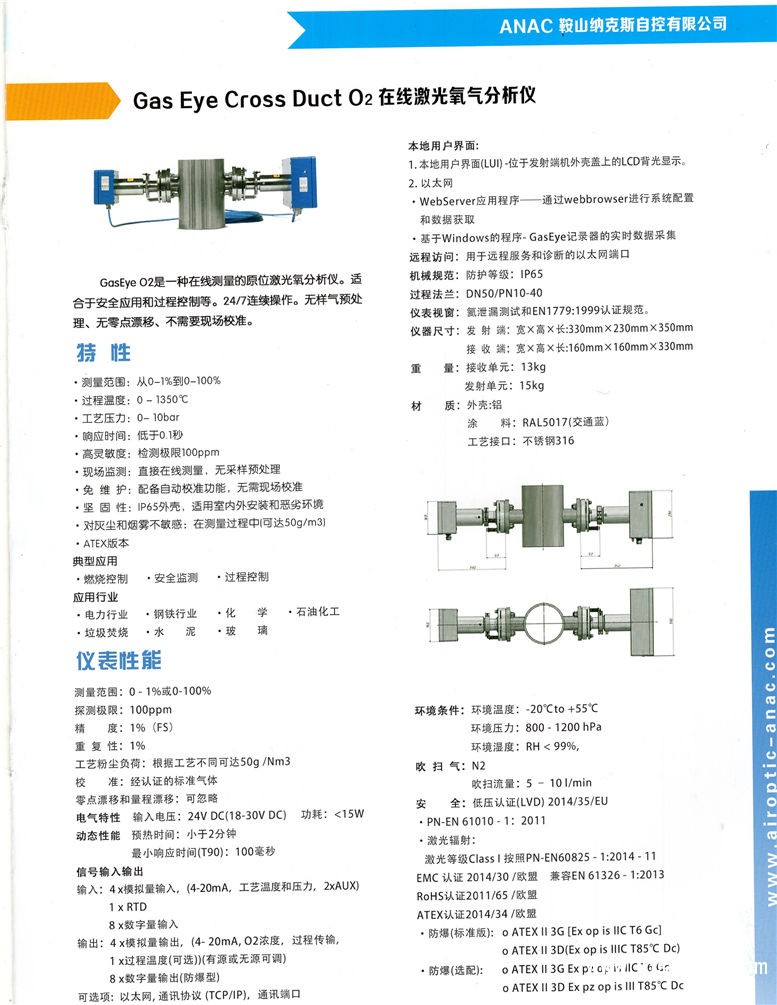 鞍山納克斯自控有限公司(Anshan Norks Automation Co., Ltd.)專門為中國用戶提供氣體成分監(jiān)測的優(yōu)化方案,為有意向選用波蘭Gas Eye Cross Duct系列激光氣體分析儀的用戶提供詳細(xì)的技術(shù)資料,為已經(jīng)選用Gas Eye Cross Duct系列激光氣體分析儀的用戶提供完善而及時地售后服務(wù)。我司全部技術(shù)和商務(wù)人員均從事激光設(shè)備十年以上的專業(yè)經(jīng)驗(yàn),擁有經(jīng)過波蘭Airoptic公司全面培訓(xùn)過的專業(yè)技術(shù)人員,擁有波蘭Airoptic公司公司專供的專業(yè)校驗(yàn)技術(shù)與實(shí)施設(shè)備,我們有信心亦有能力為我們的用戶提供完整的售前、售中及售后服務(wù),選用Gas Eye Cross Duct系列激光氣體分析儀將是您無悔的選擇!