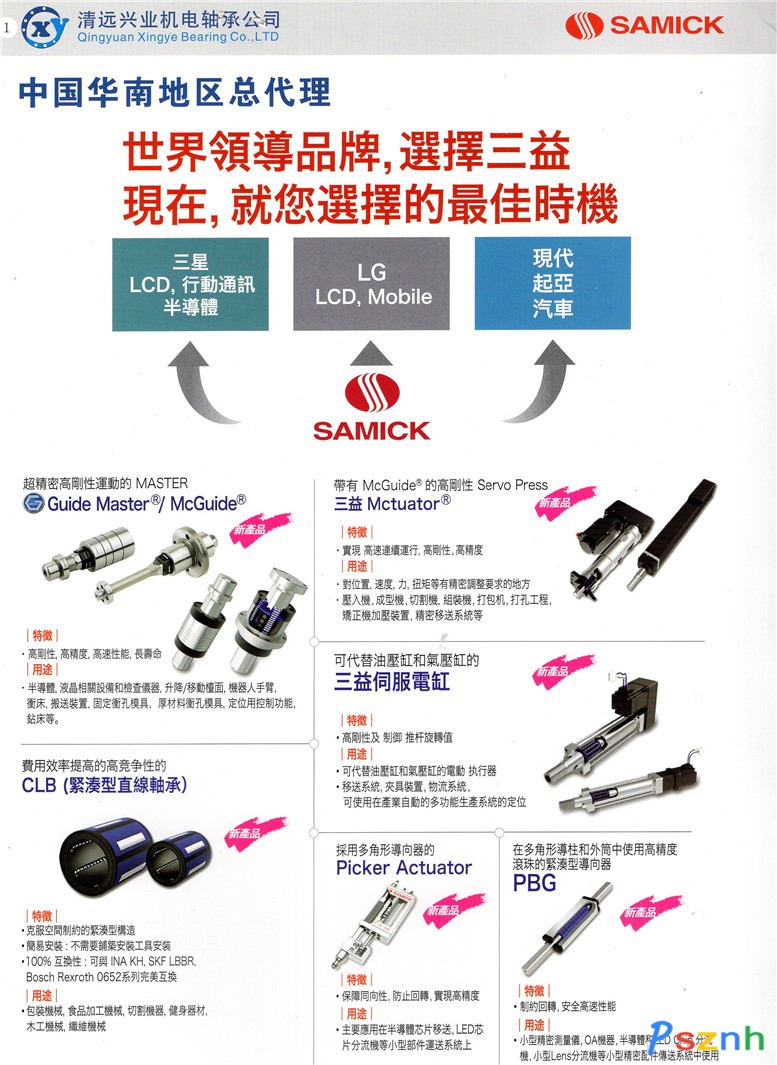 清遠(yuǎn)市興業(yè)自動化設(shè)備有限公司是中國華南地區(qū)專業(yè)代理三益(SAMICK)直線軸承、自動化電子設(shè)備配件。經(jīng)銷德國力士樂(Rexroth)滾珠/滾柱導(dǎo)軌導(dǎo)向系列產(chǎn)品,進(jìn)口及國產(chǎn)系列精密微型軸承,主要銷售內(nèi)徑1-15mm、外徑30mm以下的公制、英制、深溝球軸承、法蘭系列軸承、平面推力球軸承等各類微型軸承。商品規(guī)格齊全,質(zhì)量保證在市場上有較大優(yōu)勢和潛力。